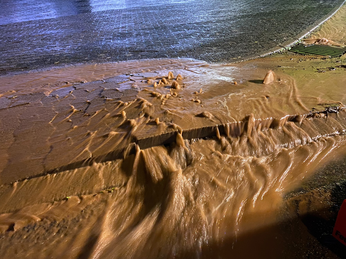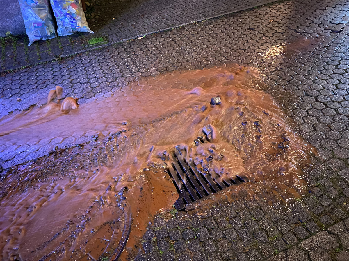 Straße unterspült und Keller unter Wasser am Matzenberg