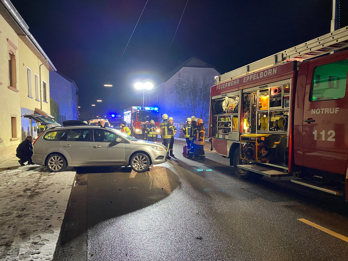 Die Löschbezirke Eppelborn und Bubach-Calmesweiler sowie Rettungsdienst und Notarzt wurden am Abend des 14. Dezember 2022 gegen 19:05 Uhr zu einem Verkehrsunfall in die Kossmannstraße gerufen. Der Fahrer eines Pkw befuhr die Straße in Fahrtrichtung Habach und kollidierte mit einem am rechten Fahrbahnrand abgestellten Fahrzeug. Beim Eintreffen der Einsatzkräfte hatte sich der Fahrer bereits aus eigener Kraft aus seinem Fahrzeug befreit und wurde von Anwohnern betreut. Rettungssanitäter der Feuerwehr übernahmen die weitere Betreuung und Untersuchung des Unfallfahrers bis zur Übergabe an den Rettungsdienst. An den beteiligten Fahrzeugen wurden die Batterien abgeklemmt und der Brandschutz sichergestellt. Die Kossmannstraße musste während der Rettungs- und Bergungsarbeiten voll gesperrt werden. An beiden Fahrzeugen entstand Totalschaden. Der Fahrzeugführer erlitt bei dem Unfall glücklicherweise nur leichte Verletzungen und wurde zur weiteren Untersuchung in ein Krankenhaus gebracht. Die Feuerwehr sicherte zusammen mit der Polizei die Unfallstelle bis zum Abtransport der beiden Fahrzeuge ab.