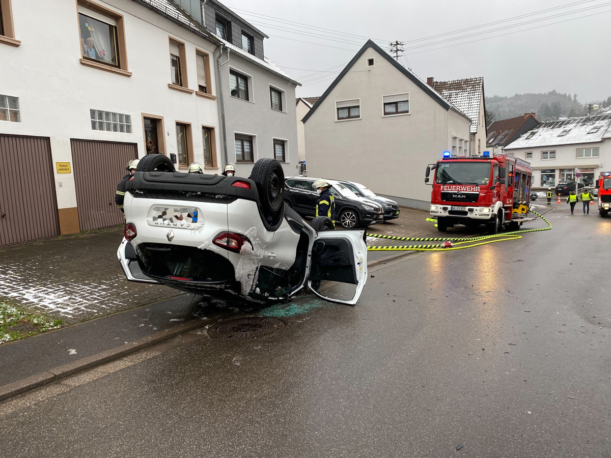 Fahrzeug bleibt nach Unfall auf dem Dach liegen