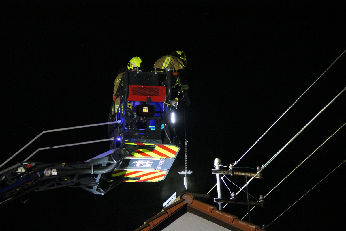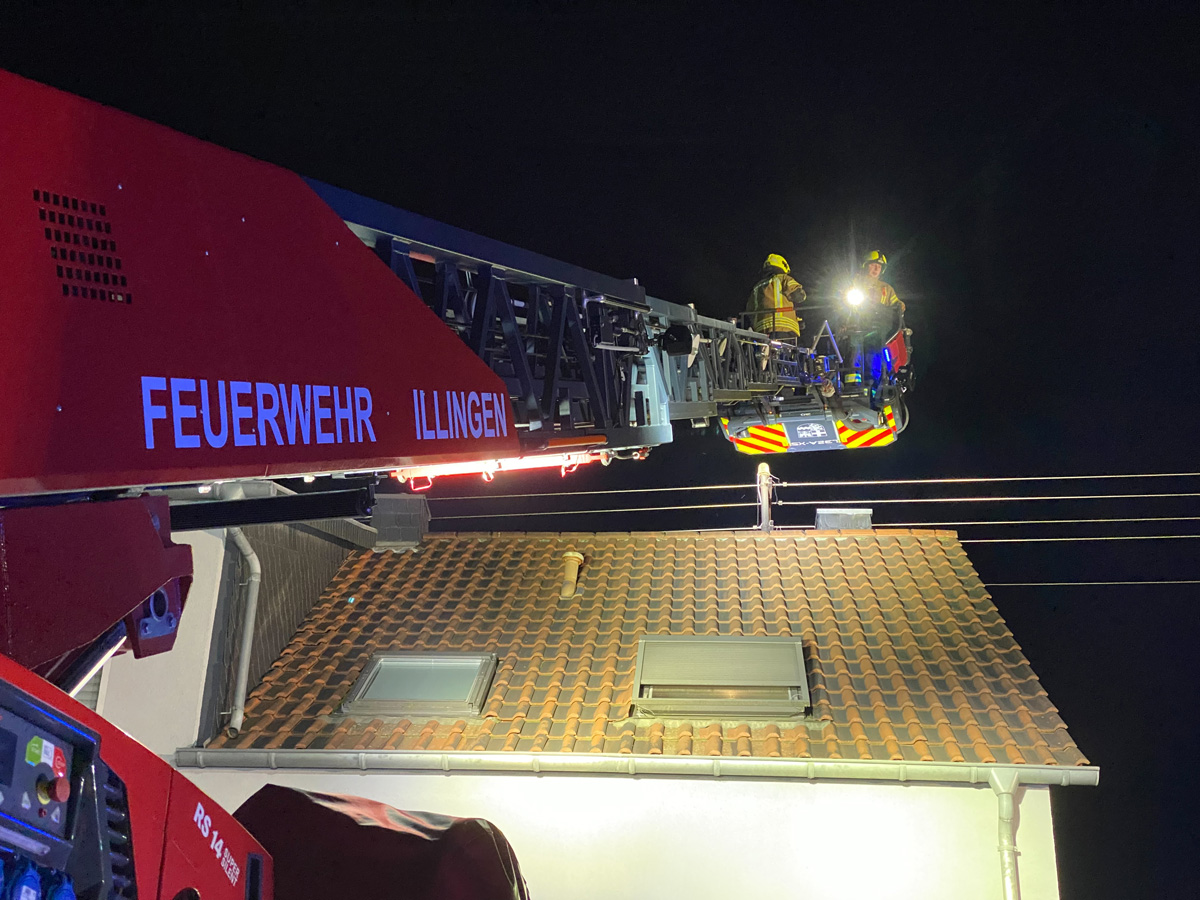 Über den Korb der Drehleiter der Feuerwehr Illingen wurden die brennenden Ablagerungen mit einem Kaminkehrwerkzeug entfernt werden. Die Glutreste wurde vor das Gebäude gebracht und dort abgelöscht. Mit einer Wärmebildkamera wurde der Schornstein im Verlauf kontrolliert, um ein Übergreifen des Brandes schnell erkennen zu können.