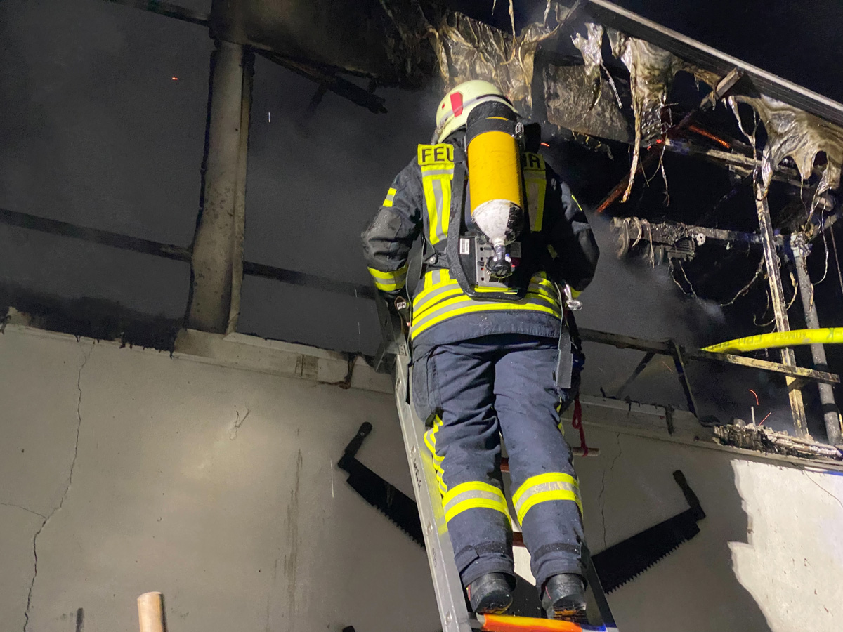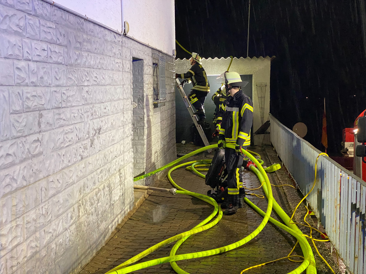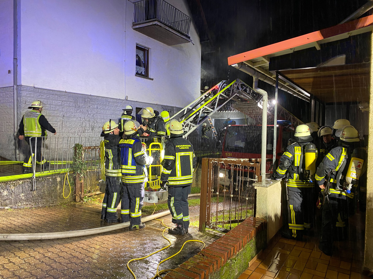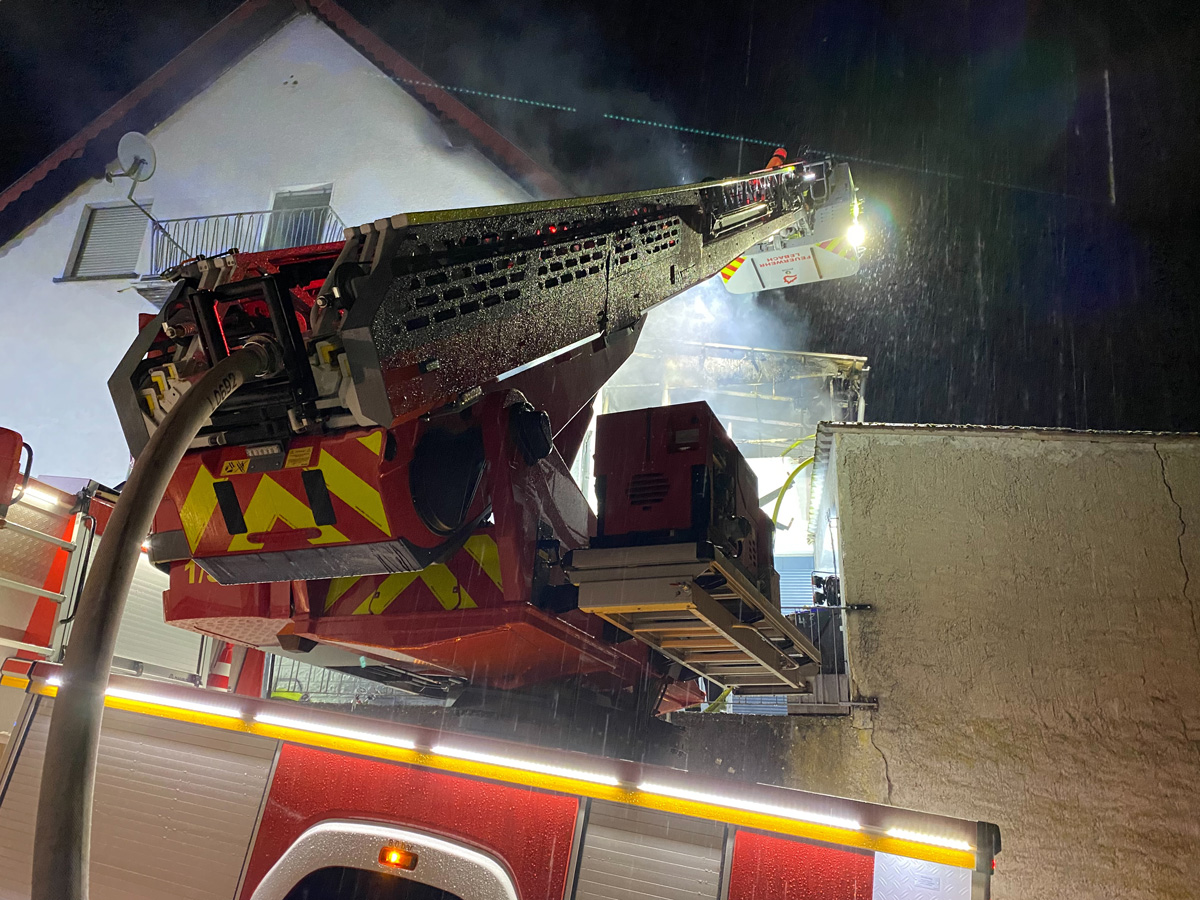Alarm für die Löschbezirke Eppelborn und Bubach-Calmesweiler gegen 05:00 Uhr am 10. März 2023: Auf einer Terrasse eines Wohngebäudes in der Straße "Auf Der Hohl" soll es zu einem Brand auf einer Terrasse gekommen sein. Zahlreiche Anrufer hatten das von Weitem sichtbare Feuer der Leitstelle auf dem Saarbrücker Winterberg über Notruf gemeldet. Beim Eintreffen der Einsatzkräfte stand die Überdachung bereits im Vollbrand, der Anwohner hatte sich bereits selbst in Sicherheit gebracht. Während von außen sofort mit der Brandbekämpfung begonnen wurde, kontrollierten weitere Trupps unter Atemschutz, ob das Feuer bereits auf das Wohngebäude übergegriffen hat. Über die Drehleiter der Feuerwehr Lebach wurde das Dach an mehreren Stellen aufgedeckt, um sicherzustellen, dass sich das Feuer nicht auf den Dachstuhl ausgedehnt hat. Bis auf kleinere Glutnester konnte hier aber kein Schaden festgestellt werden. Durch den schnellen Einsatz der Feuerwehr konnte ein Übergreifen auf das Wohngebäude verhindert werden. Bis auf eine leichte Verrauchung blieb das Gebäude unbeschädigt. Lediglich die Überdachung der Terrasse wurde durch das Feuer komplett zerstört. Der 69 jährige Bewohner des Anwesens blieb unverletzt. Die Einsatzstelle wurde an die Polizei übergeben. Brandermittler der Kriminalpolizei haben die Ermittlungen zur Brandursache aufgenommen. Am späteren Vormittag fand eine weitere Kontrolle der Einsatzstelle statt, bei der noch einmal vereinzelte Glutnester aufgespürt und abgelöscht werden konnten.