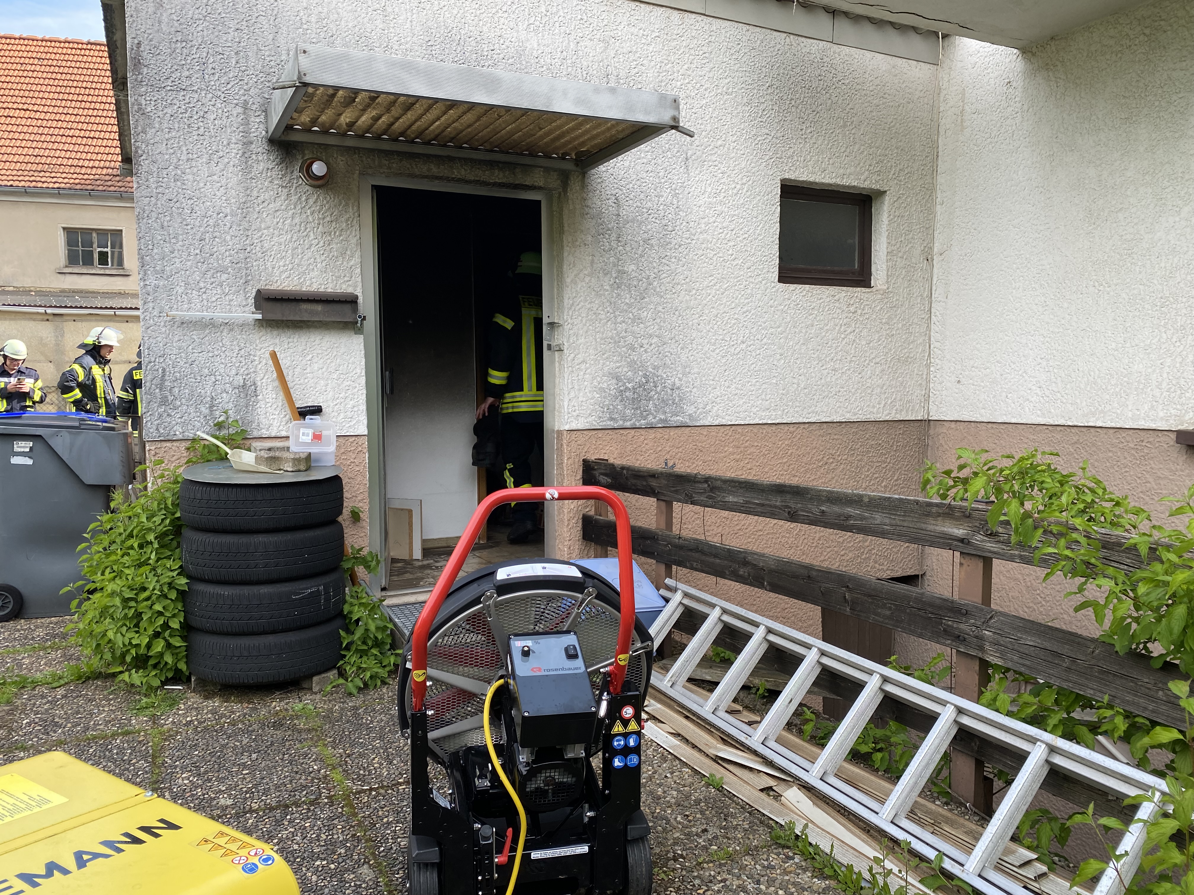 Blitzschnell waren die ersten Feuerwehrangehörige an der Einsatzstelle und konnten einen Brand bestätigen. Die Flammen waren bei Ankunft bereits von selbst erloschen, jedoch war der Brandraum noch stark thermisch beaufschlagt und in Mitleidenschaft gezogen worden.