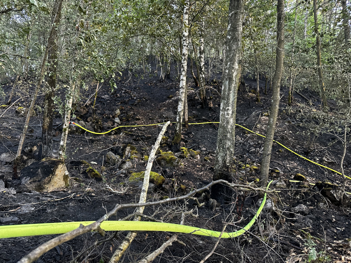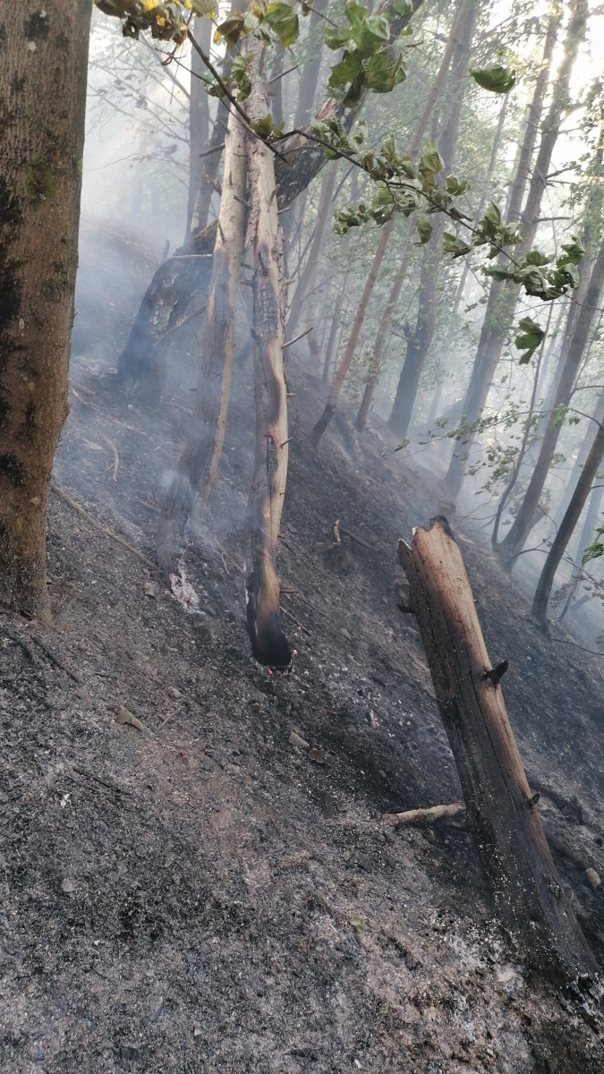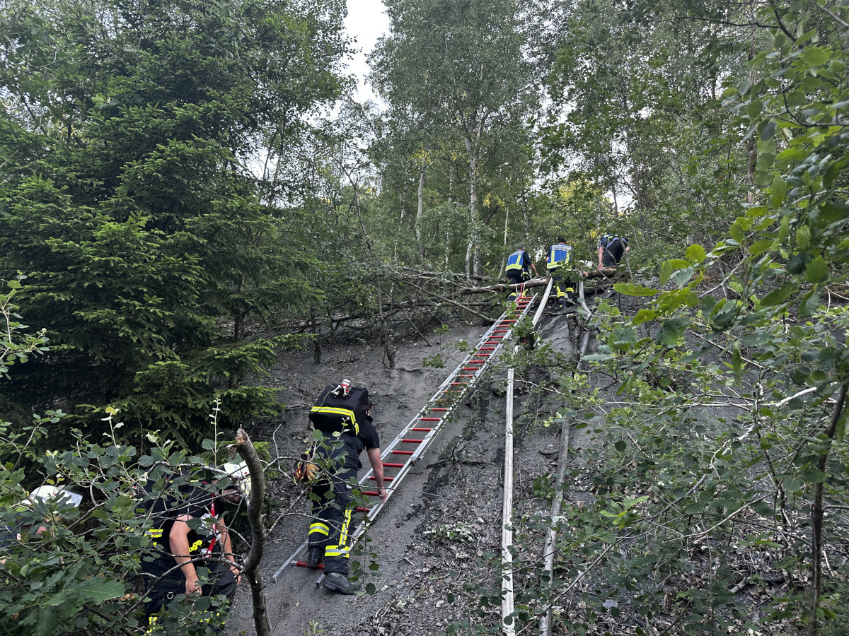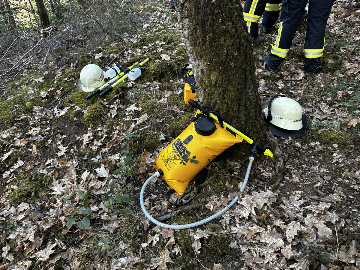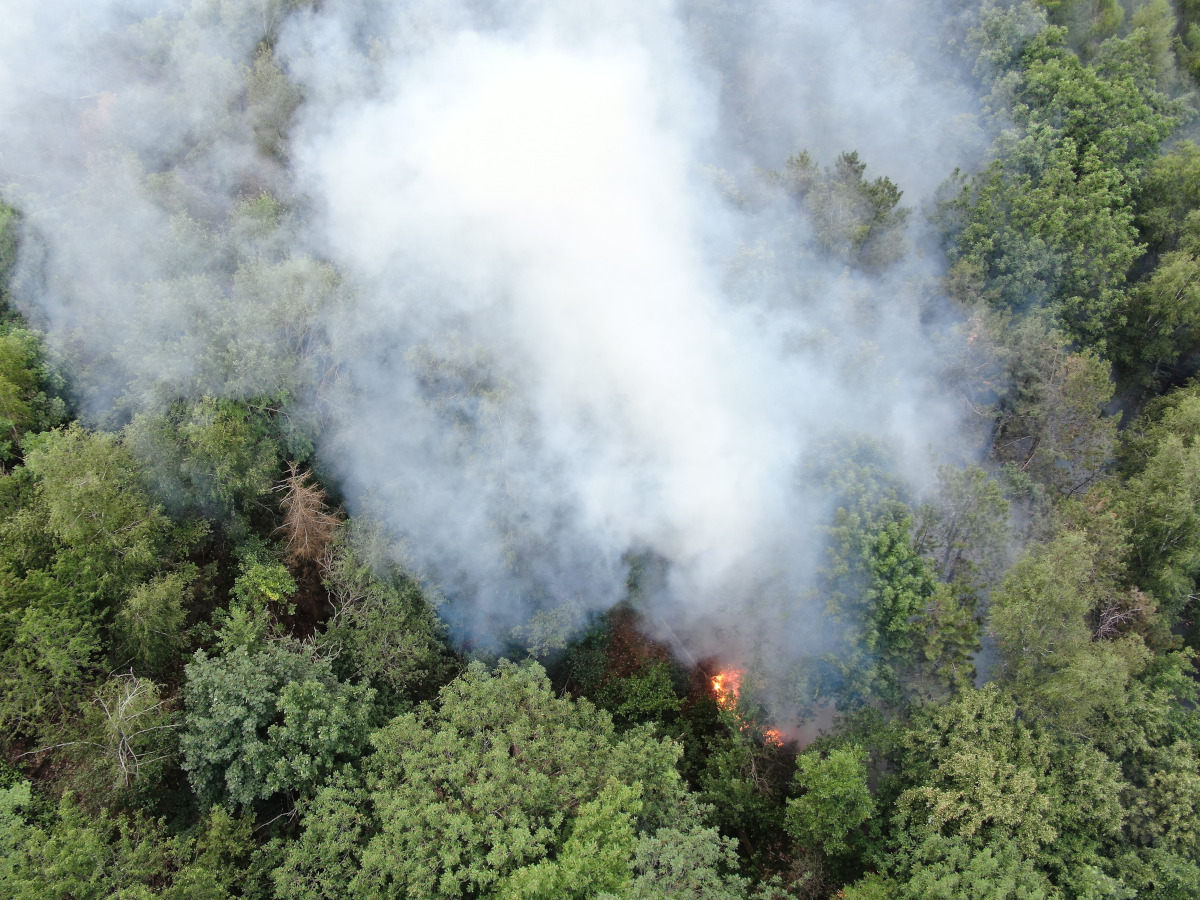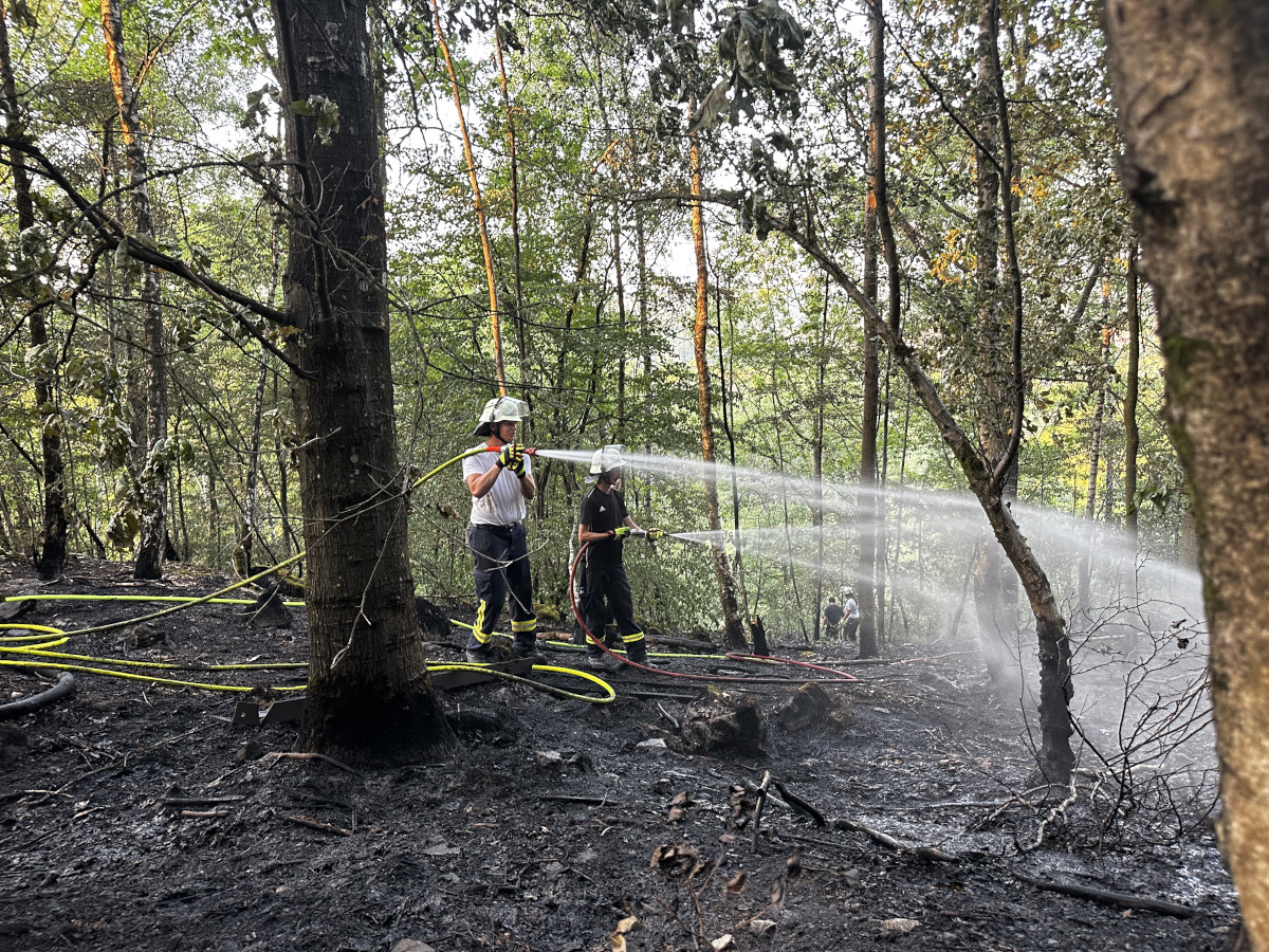 [left][cmsimg]12460[/cmsimg][/left] Gegen 18:30 Uhr hatte sich das Feuer an zwei Brandstellen bereits auf einer Fläche von mehr als 3.000 Quadratmetern ausgebreitet. Die Einsatzkräfte vor Ort kämpften im Wald nicht nur mit den Flammen und der anspruchsvollen Haldentopographie, sondern auch die Sommerhitze setzte ihnen stark zu. Gerade die Hitze forderte von den Einsatzkräften ihren Tribut, mussten doch mehrere Feuerwehrangehörige vorwiegend wegen Kreislaufproblemen, aber auch wegen anderer kleiner Blessuren durch den Rettungsdienst behandelt werden.
