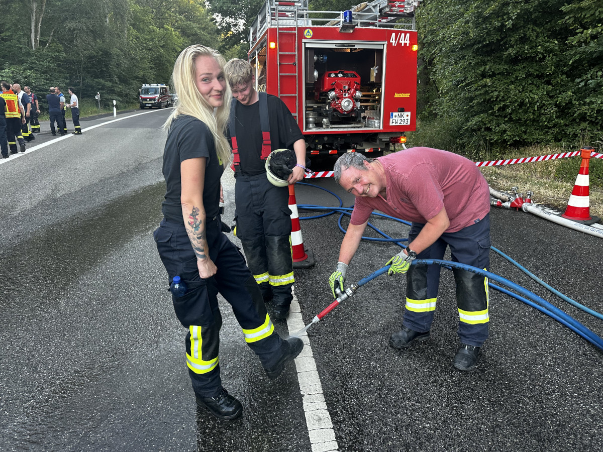 Da sich die Wehren aus Neunkirchen und dem ganzen Landkreis bereits mehrere Stunden im Einsatz befanden, wurden zur Verpflegung und Absicherung der Einsatzkräfte zusätzliche Kräfte des Deutschen Roten Kreuz (DRK) alarmiert. Mit Getränken und belegten Broten konnte der Kräftehaushalt wieder aufgefrischt werden.