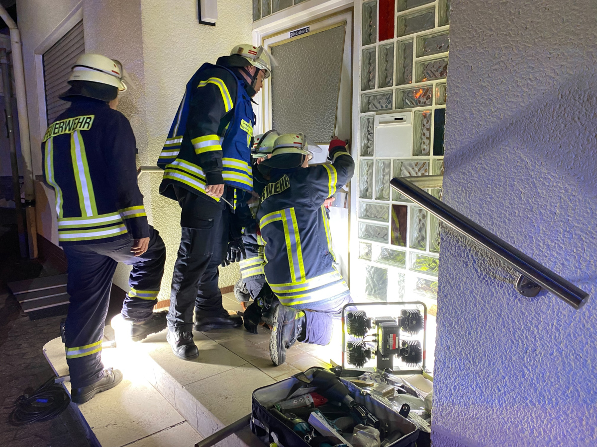 Feuerwehr, Rettungsdienst und Polizei wurden am 29. September 2023 kurz vor Mitternacht in die Rathausstraße alarmiert. Der Bewohner eines Hauses befand sich in einer Notlage, konnte aber die Eingangstür aus eigener Kraft nicht mehr öffnen.