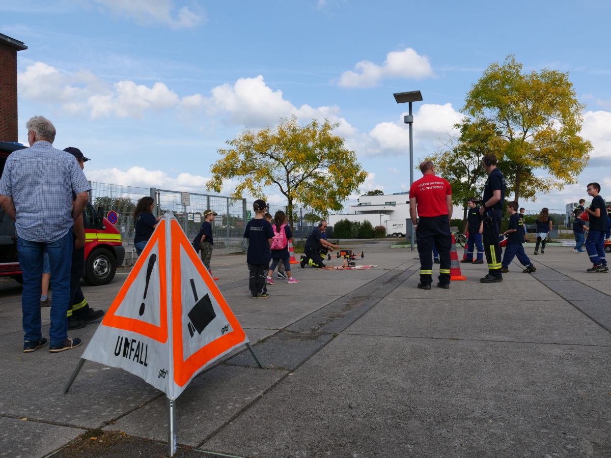 Die Kinder und Jugendlichen hatten die Gelegenheit, an der Feuerlöschübungsanlage zu erleben, wie ein Feuer gelöscht wird. Der Spielanhänger des Landkreises bot eine breite Auswahl an Spielen, darunter Tic, Tac, To, eine Spritzwand, ein Kegelspiel, Wikingerschach, Seilwerfen und Skilaufen. Neben der echten Schauübung wurde den Besuchern auch die Funktionsweise und der Einsatz von Drohnen nähergebracht.