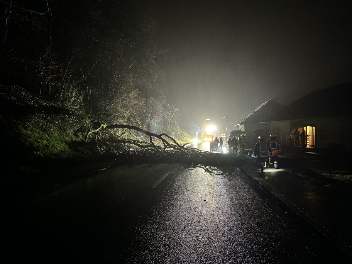 Baum stürzt nach anhaltenden Regenfällen auf Straße