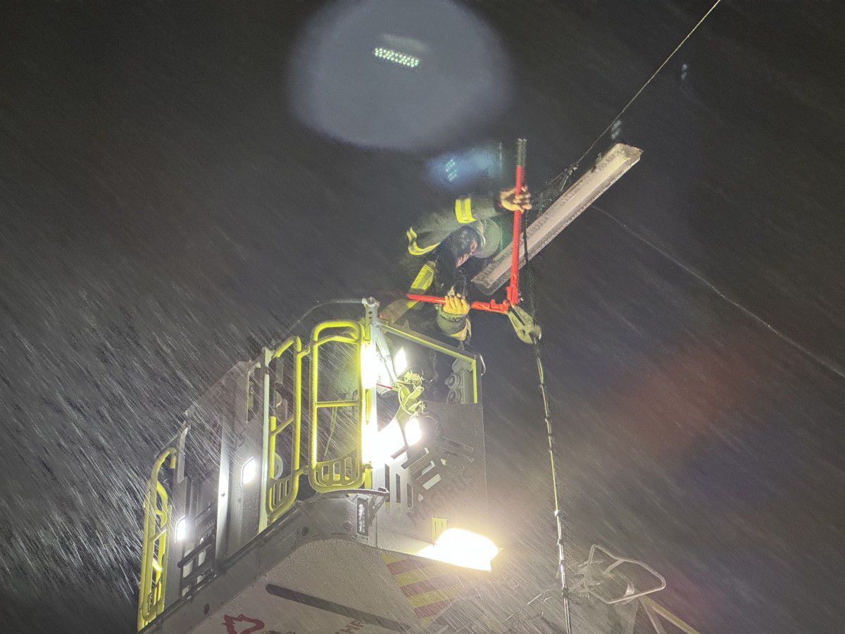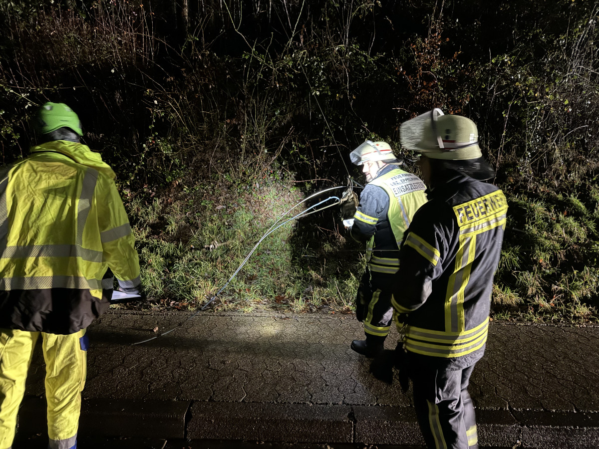 Bevor mit den Aufräumungsarbeiten begonnen werden konnte, musste daher durch den Energieversorger die Stromversorgung der betroffenen Kabel unterbrochen werden. Erst dann konnte der Baum mit der Motorkettensäge zerkleinert und die Fahrbahn geräumt werden.