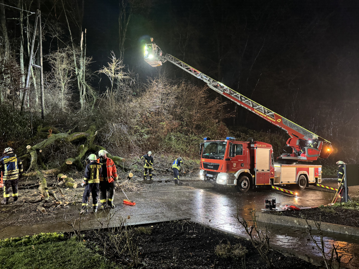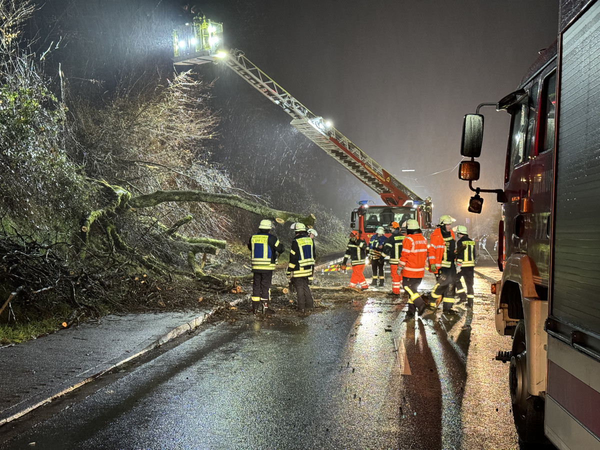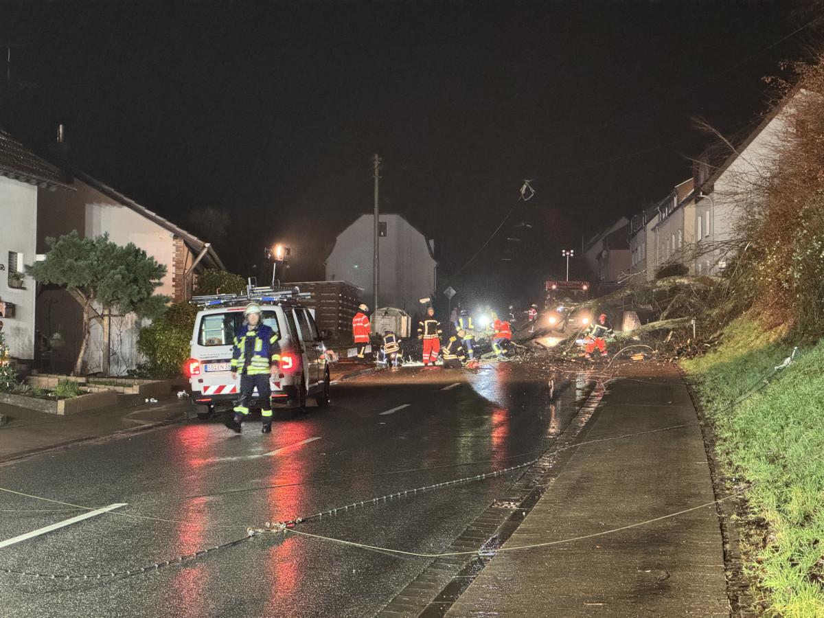 Der Löschbezirk Eppelborn wurde gegen 22:07 Uhr von der Rettungsleitstelle alarmiert. Beim Ankunft der Einsatzkräfte waren beide Fahrspuren der L300 durch den Baum blockiert. Ausserdem lagen die immer noch stromführenden Kabel der Straßenbeleuchtung auf der nassen Fahrbahn.
