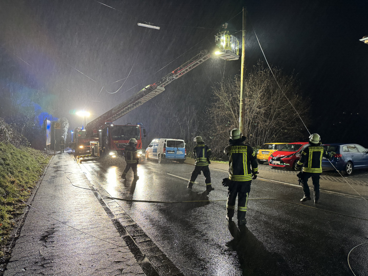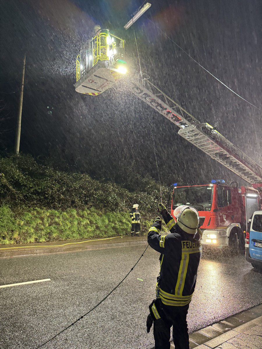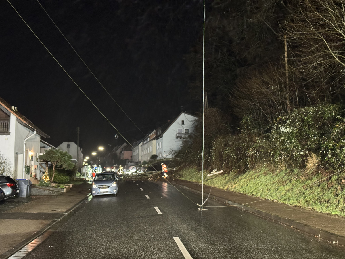 Die anhaltenden Regenfälle der vergangenen Wochen haben vielerorts die Böden aufgeweicht. Das war wohl mit ein Grund, dass am Abend des 25. Dezember 2023 ein Baum in der Kossmannstraße auf die Fahrbahn stürzte. Dabei riss er auch rund 200 Meter der mittig über der Fahrbahn verlaufenden Straßenbeleuchtung mit zu Boden.