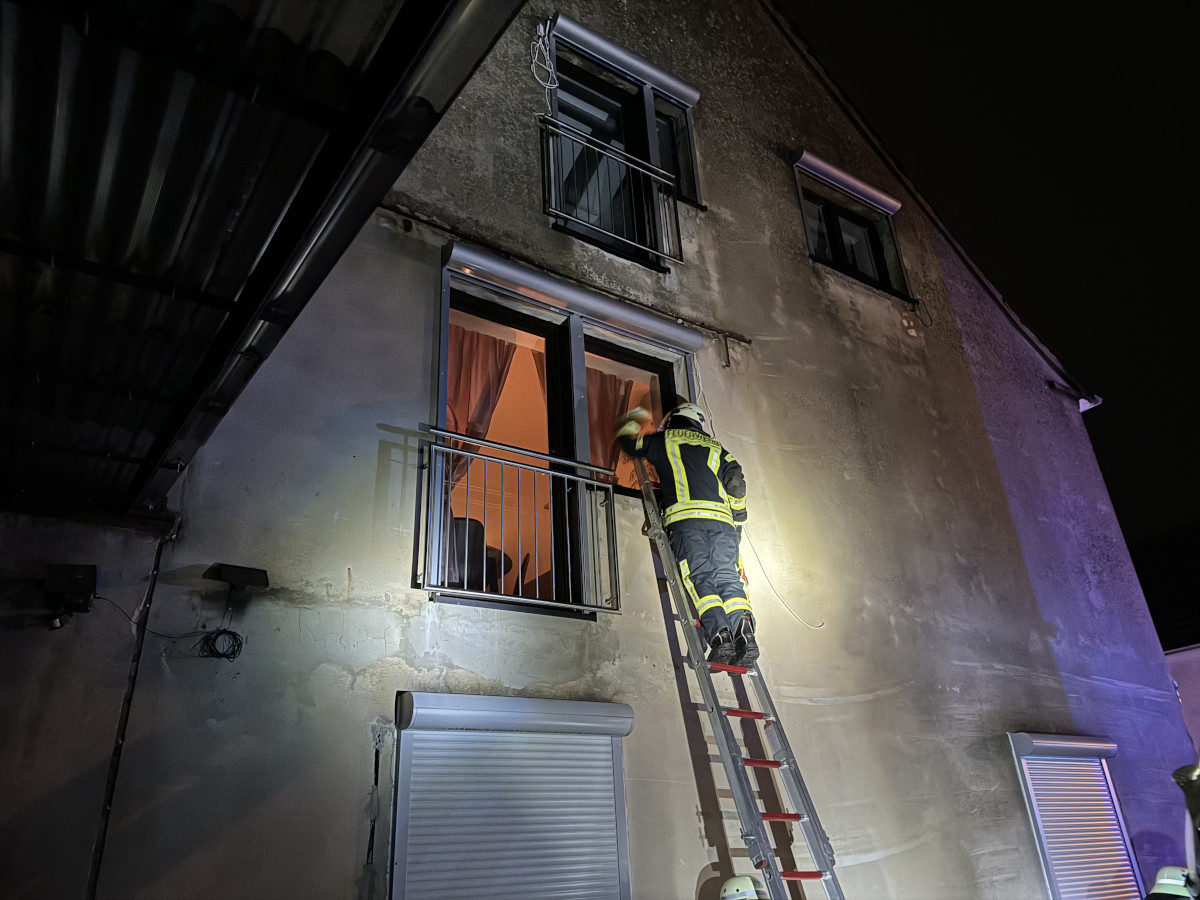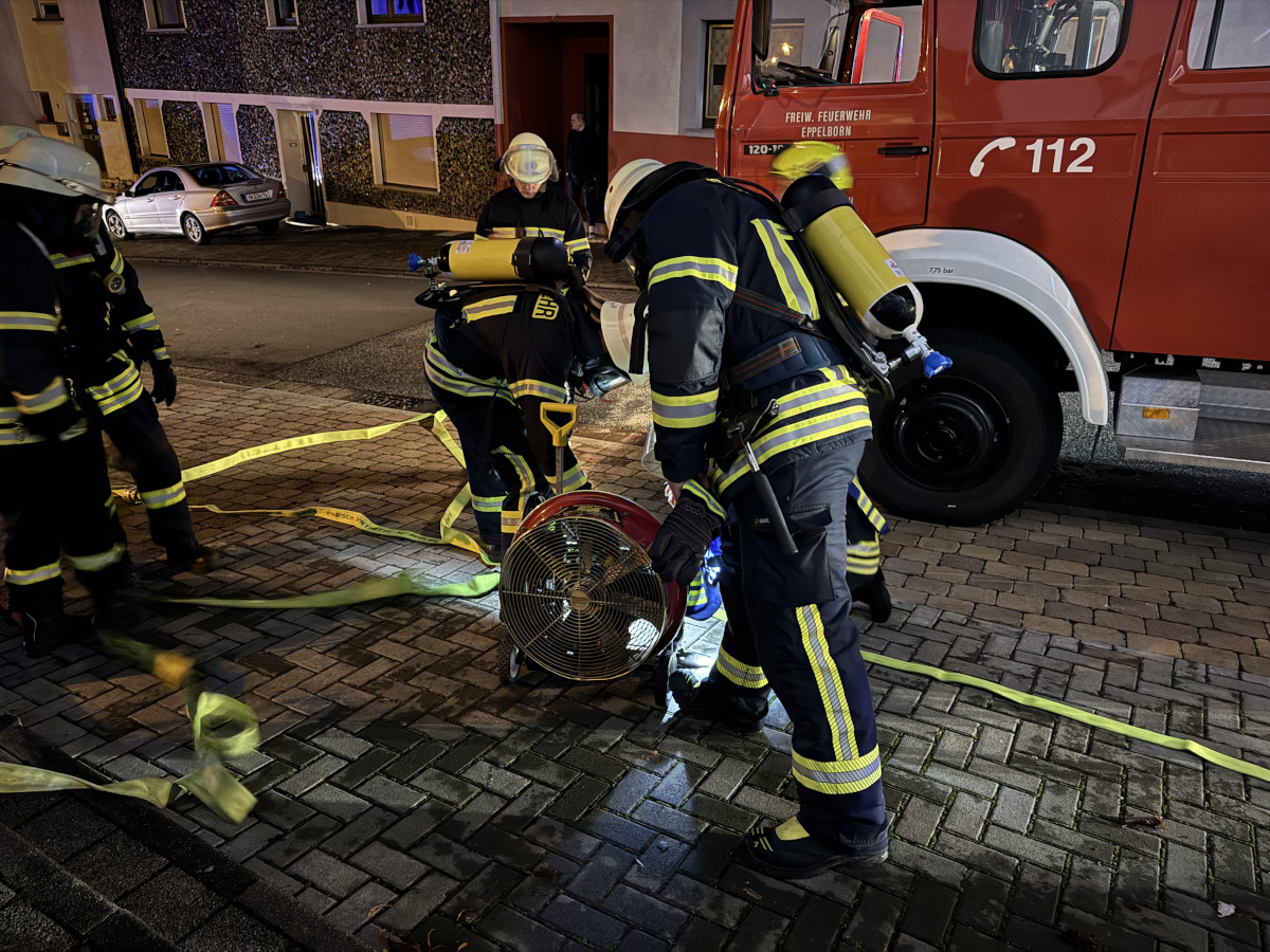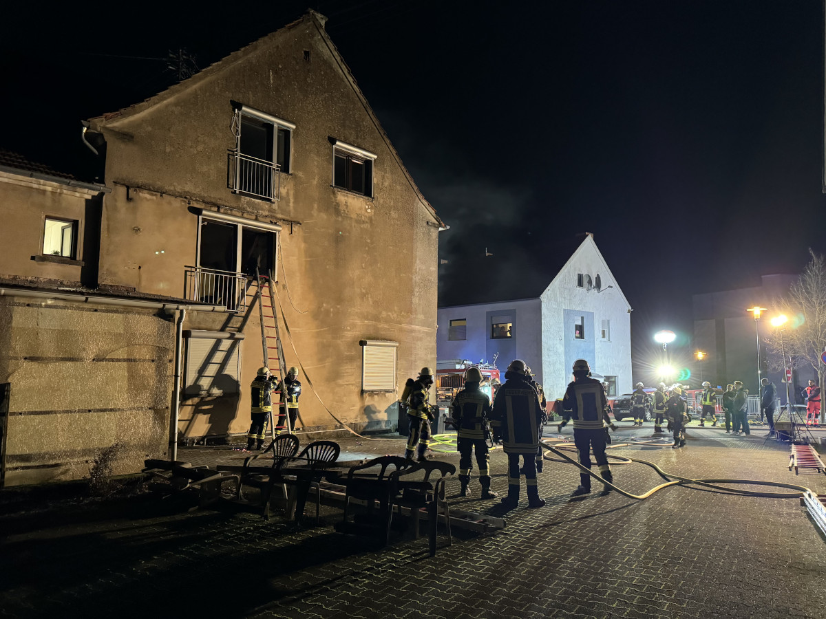 Einsatz für die Einsatzkräfte aus Wiesbach, Habach und Humes-Hierscheid am frühen 1. Weihnachtstag: Kurz nach Mitternacht wurden sie von der Rettungsleitstelle zu einem Zimmerbrand in die Kirchenstraße alarmiert, nachdem Passanten auf das Piepen eines Rauchwarnmelders aufmerksam geworden waren und durch ein Fenster Flammenschein im 1. Obergeschoss bemerkt hatten.