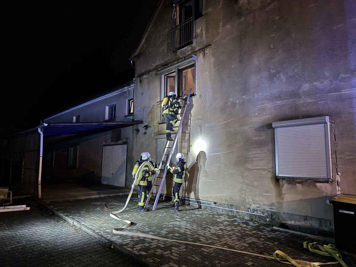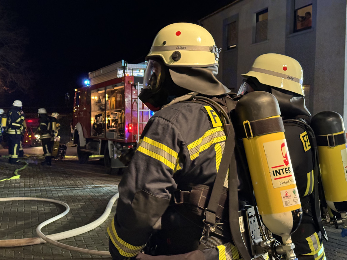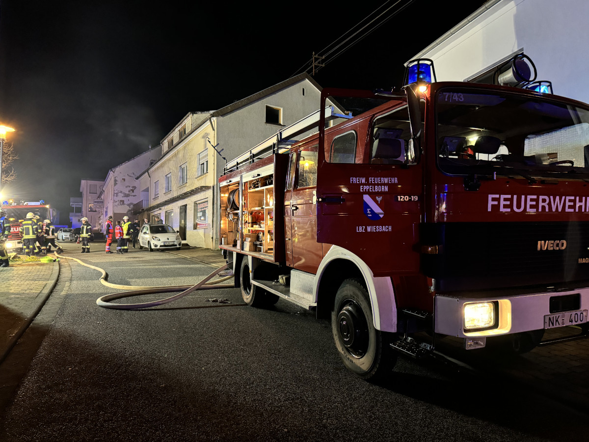 Einsatz für die Einsatzkräfte aus Wiesbach, Habach und Humes-Hierscheid am frühen 1. Weihnachtstag: Kurz nach Mitternacht wurden sie von der Rettungsleitstelle zu einem Zimmerbrand in die Kirchenstraße alarmiert, nachdem Passanten auf das Piepen eines Rauchwarnmelders aufmerksam geworden waren und durch ein Fenster Flammenschein im 1. Obergeschoss bemerkt hatten.
