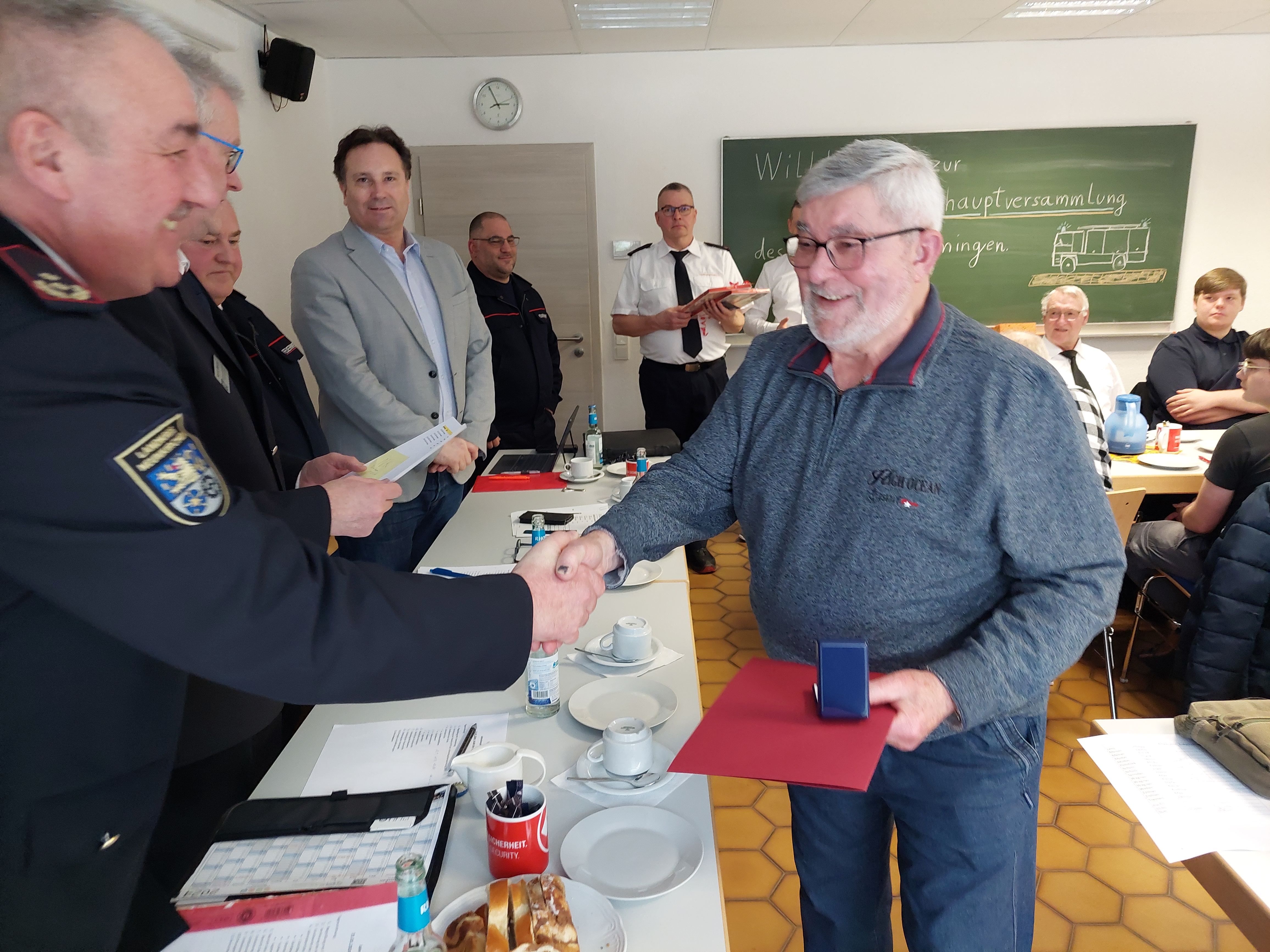 Löschmeister Herbert Detzler für 65 Jahre Mitgliedschaft geehrt.