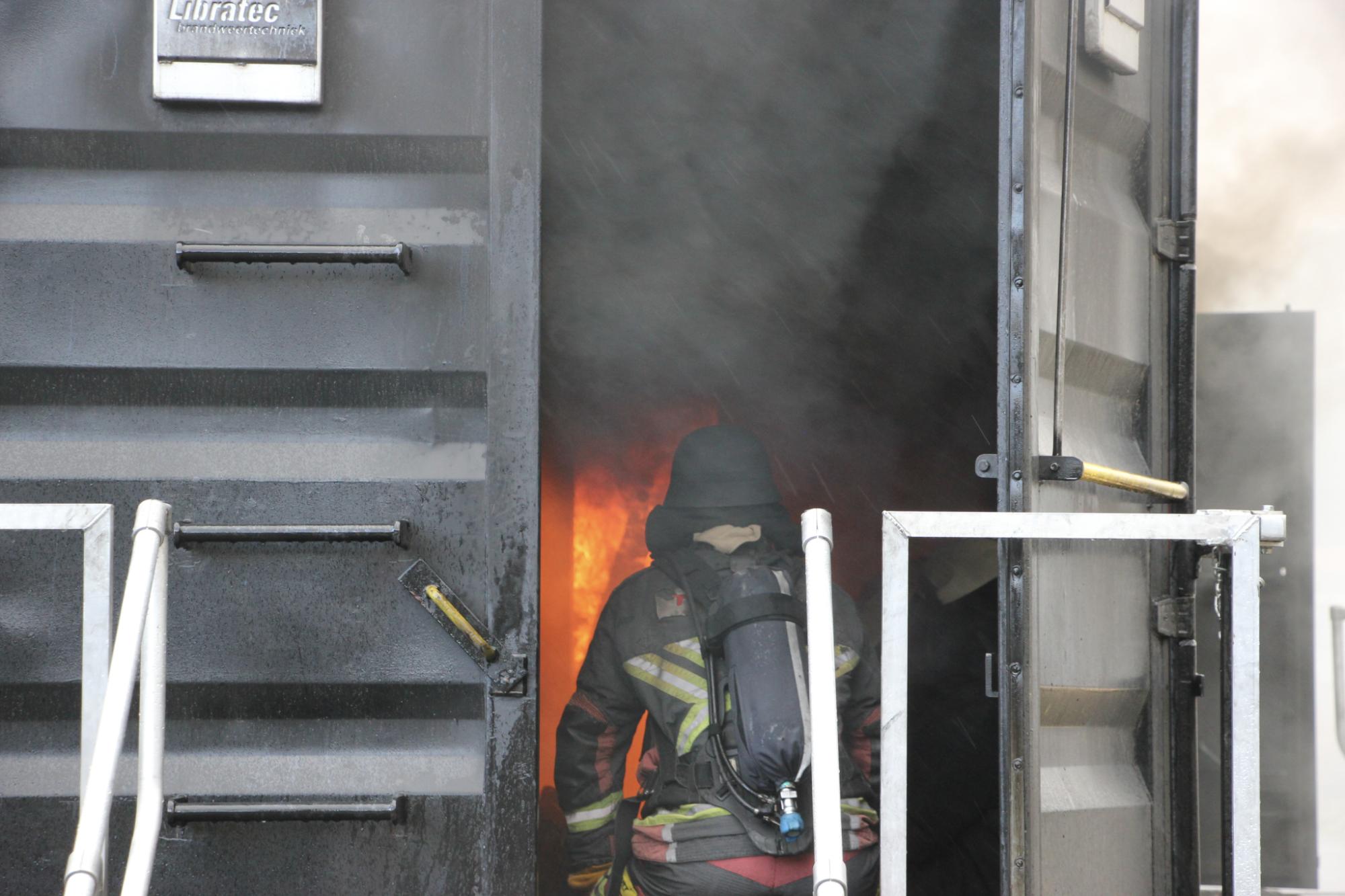 Einsatzkräfte der Feuerwehr Eppelborn trainierten im Brandcontainer