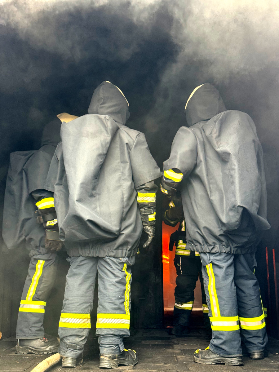 Im zweiten Anlauf konnte jetzt die eigentlich schon für Oktober 2023 geplante Ausbildung von Einsatzkräften der Feuerwehr Eppelborn im Brandcontainer stattfinden. Damals hatte ein Großbrand die Feuerwehr in der Nacht vor der geplanten Veranstaltung in Atem gehalten, so dass die geplante Schulung nicht stattfinden konnte. Ganz unbürokratisch und ohne Mehrkosten wurde gemeinsam ein neuer Termin abgestimmt und so konnte die Ausbildung mit wenigen Monaten Verspätung am vergangenen Wochenende nachgeholt werden. Insgesamt 25 Teilnehmerinnen und Teilnehmer aus den verschiedenen Löschbezirken der Feuerwehr Eppelborn lernten so hautnah die verschiedenen Brandphänomene, das Vorgehen im Innenangriff und vieles mehr. Im holzbefeuerten Brandcontainer konnte die realistische Darstellung eines Brandverlaufs in einem geschlossenen Raum unter Atemschutz hautnah erlebt werden. Die Ausbildung wurde in vier Hauptthemen untergliedert. Begonnen wurde mit einem Theorieteil. Hier erlernten die Teilnehmerinnen und Teilnehmer den Brandrauch zu lesen und zu deuten. Zudem wurden die verschiedenen Strahlrohrtechniken sowie die Türöffnung im Innenangriff nochmals durchgesprochen. Im zweiten Teil wurde mit der jeweils kompletten Gruppe das in der Theorie vermittelte Wissen in der Praxis umgesetzt. Zudem wurde der Brandcontainer so aufgeheizt, dass man bewusst eine Rauchgasdurchzündung herbeiführte um den Teilnehmern die Schutzwirkung der Feuerwehrbekleidung zu demonstrieren. Die Durchzündung führte zu Temperaturen von bis zu 600 Grad Celsius unter der Decke in dem Raum wo sich die Teilnehmer unter Atemschutz befanden. Im dritten und vierten Teil der Ausbildung wurden verschiedenste Einsatzszenarien in Kleingruppen durchgespielt. Auch die Auswirkungen eines höheren Löschwassereinsatzes im Innenangriff und des damit verbundenen Wärmeanstieges wurden näher gebracht. Eine Gruppe von 13 Personen übte diese Szenarien am Vormittag und nochmals 12 weitere Teilnehmer konnten die Szenarien am Nachmittag durcharbeiten. Für alle Lehrgangsteilnehmerinnen und Lehrgangsteilnehmer war es unter der schweren Atemschutzausrüstung ein Kräftezehrender Lehrgang. Ein besonderer Dank gilt den Ausbildern von TK Dienstleistung & Schulung und der Firma Germa Sondermaschinen- und Vorrichtungsbau GmbH, welche als ausgezeichneter "Partner der Feuerwehr" kostenlos ihr Betriebsgelände und die Sanitäreinrichtungen für die Ausbildung zur Verfügung gestellt hat.