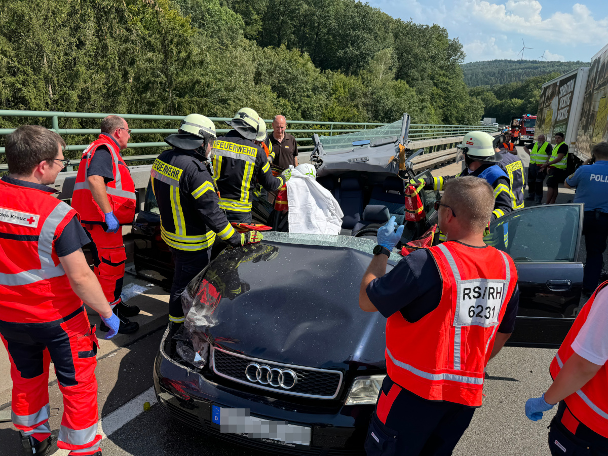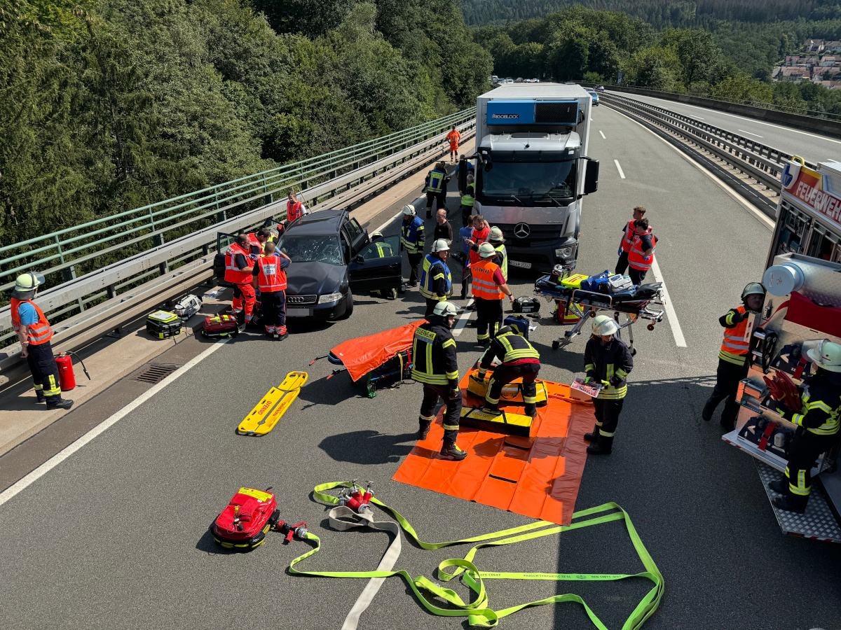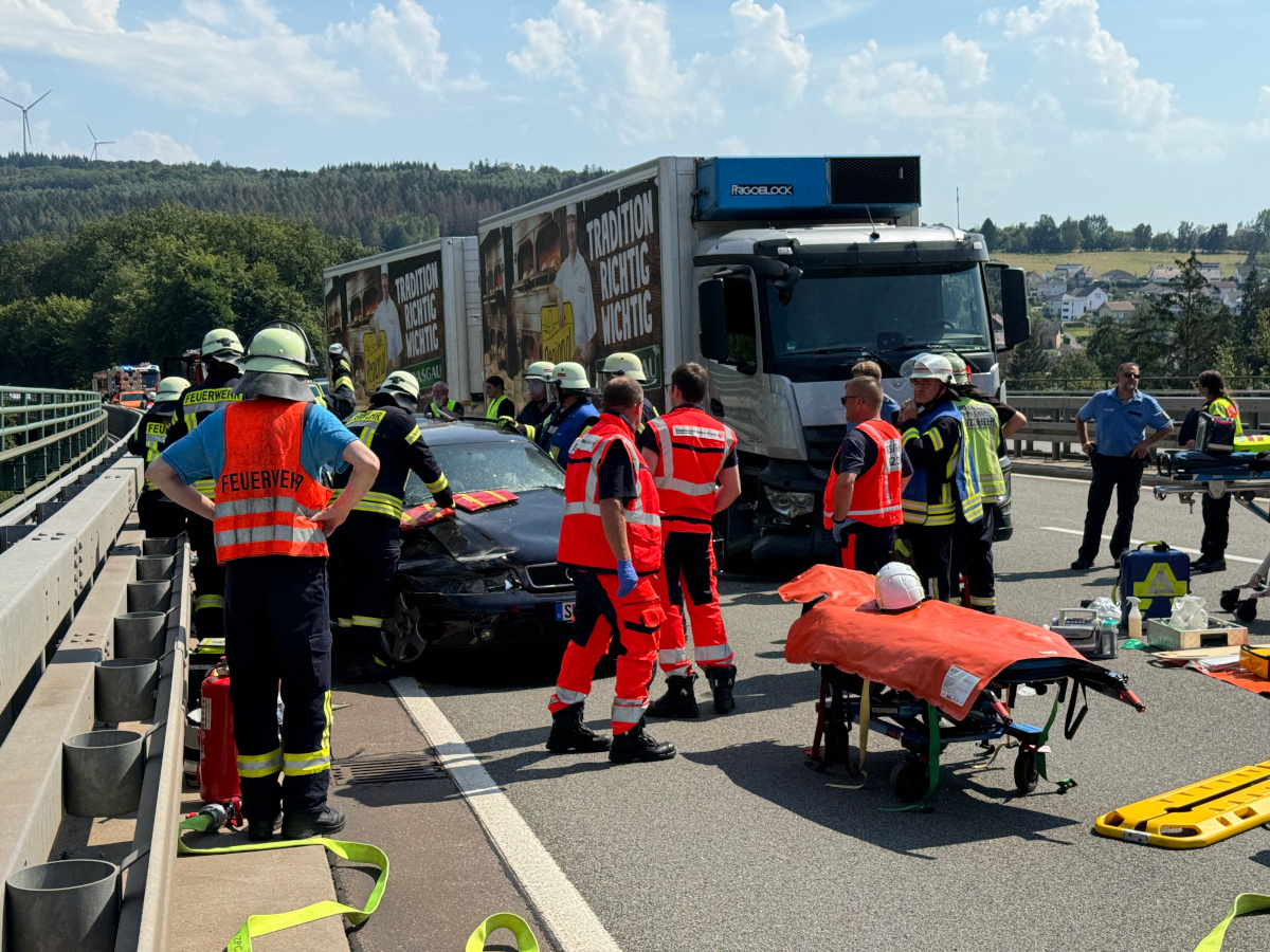 Zwei Verletzte nach Zusammenstoß von Pkw und Sattelzug auf der Autobahn