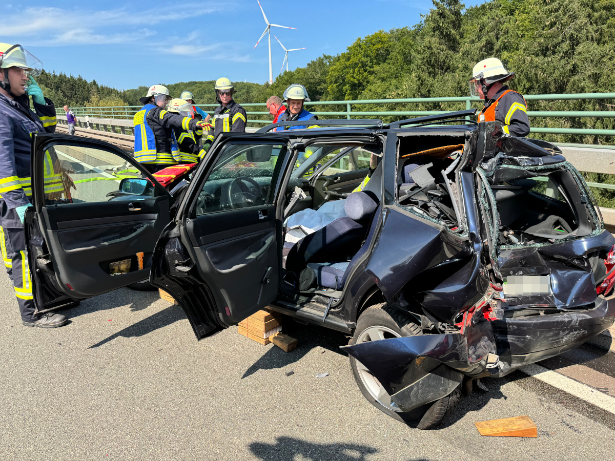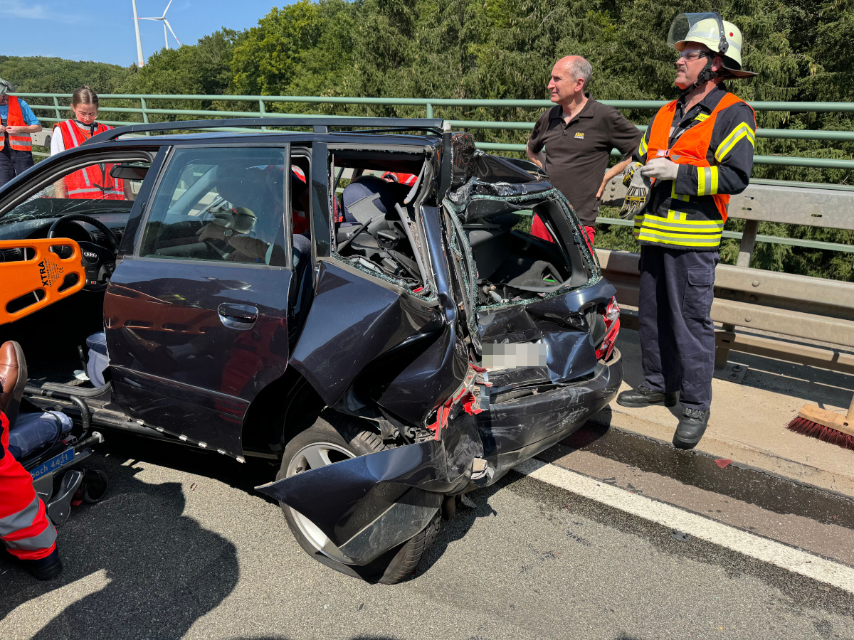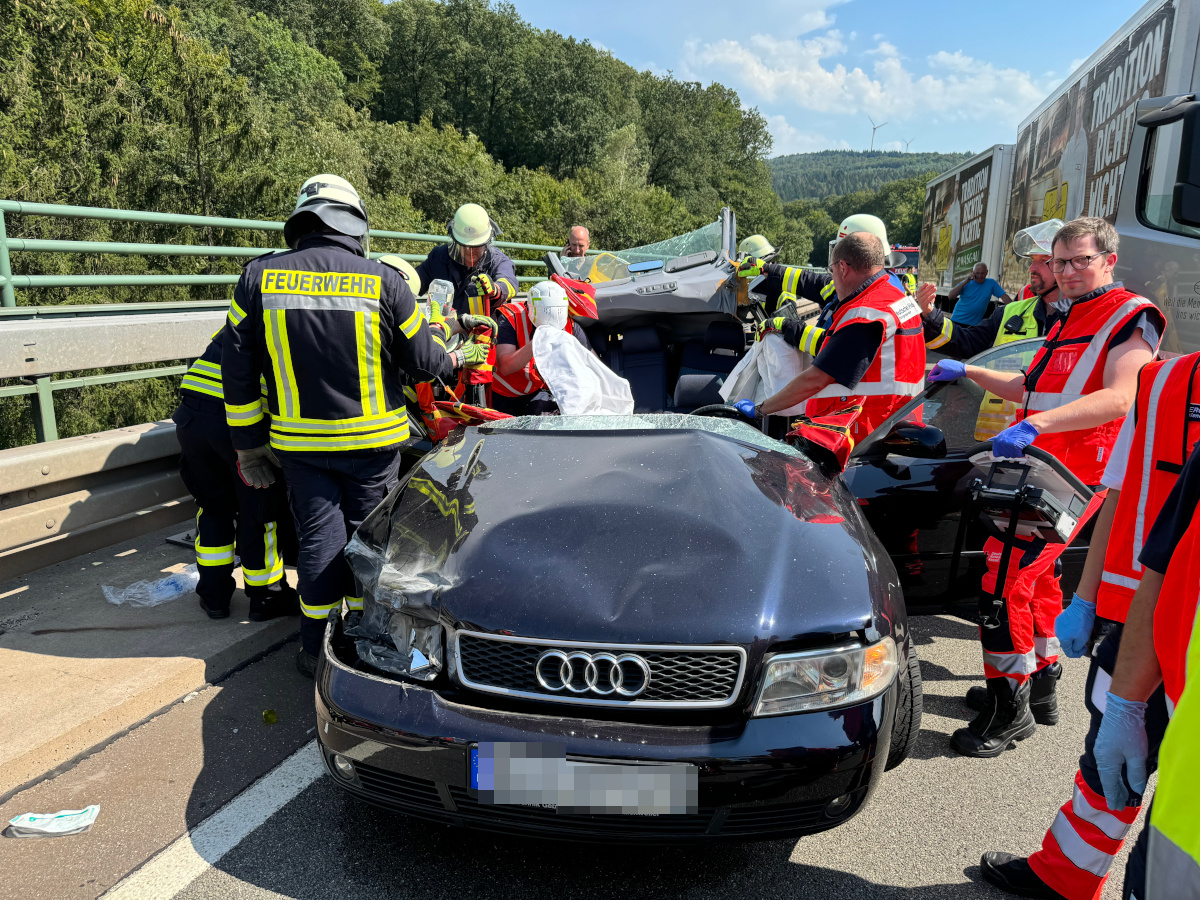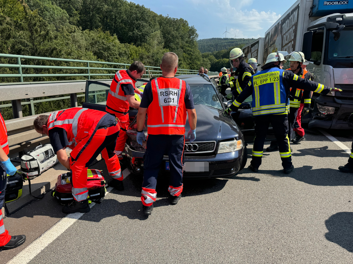 Zwei Verletzte nach Zusammenstoß von Pkw und Sattelzug auf der Autobahn
