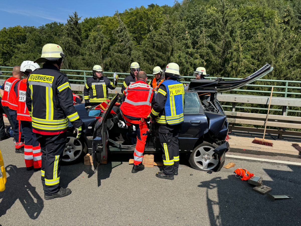Schwerer Verkehrsunfall auf der Autobahn A1 heute Nachmittag: Zwischen den Anschlussstellen Eppelborn und Tholey war ein Sattelzug auf einen Pkw aufgefahren. Mit der Meldung „eingeschlossene Personen nach Verkehrsunfall“ wurden nach dem Notruf neben Rettungsdienst und Polizei auch die Feuerwehr aus den Löschbezirken Eppelborn, Bubach-Calmesweiler und Dirmingen alarmiert.
