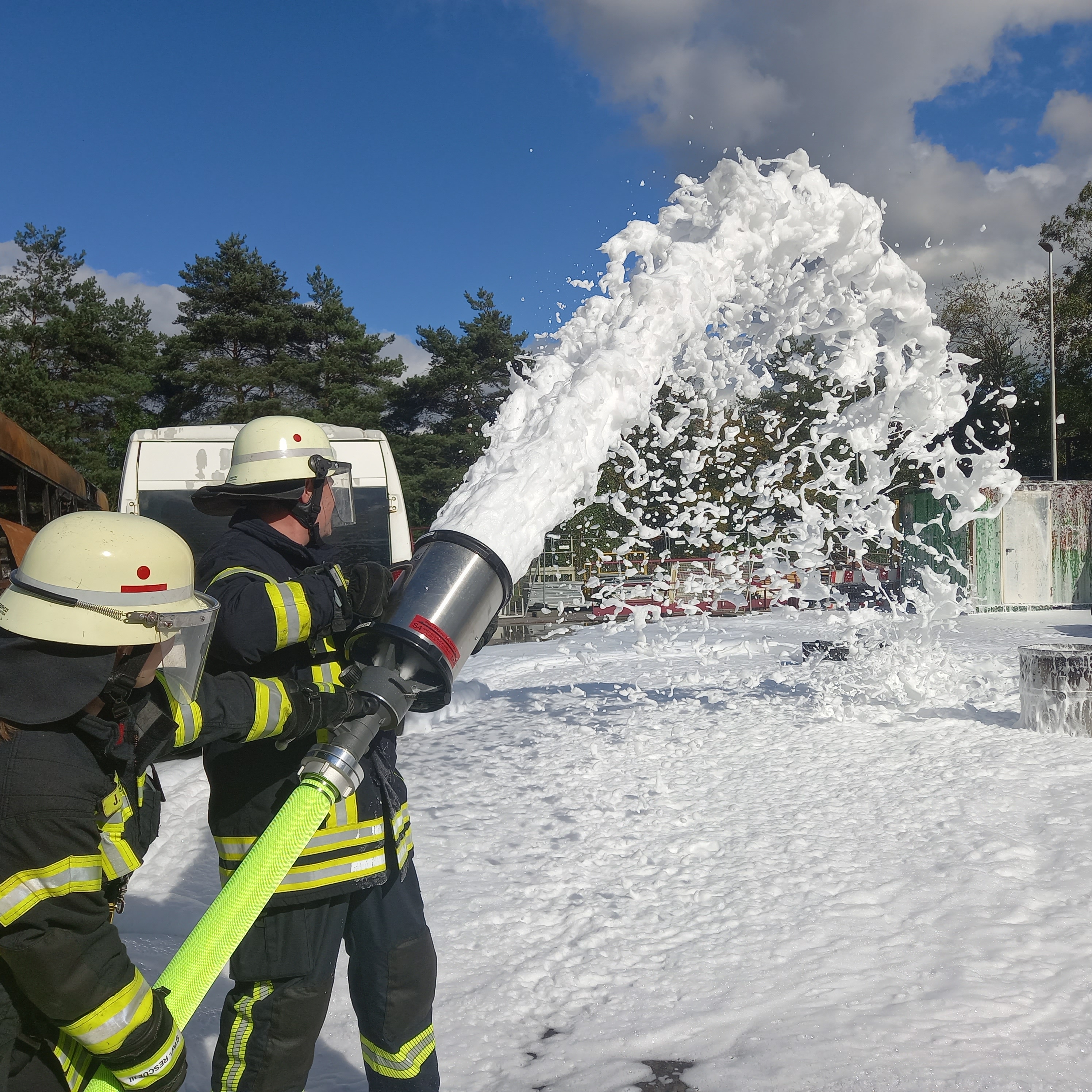 Welche verschiedene Wurfweiten und Ausbreitungseigenschaften die verschiedenen Löschschaumarten haben, wurde realistisch am Objekt probiert. Mit unterschiedlichen Schaumrohren und Schaummittel-Zumischern konnten herkömmliche Löschschäume, wie Mittel- oder Schwerschaum mit Mehrbereichsschaumbildner erzeugt werden. Neuere Löschmethoden, wie der Einsatz von „Klasse-A-Schaumbildner“ (Schaum für Feststoffbrände) oder der „Netzmitteleinsatz“ wurden ebenfalls getestet. Weitere Trainingspunkte waren der Schaumeinsatz im Bereich von Flüssigkeitsbränden mit Alkoholbestandteilen und der problematische Kombinationseinsatz Löschpulver/Löschschaum.