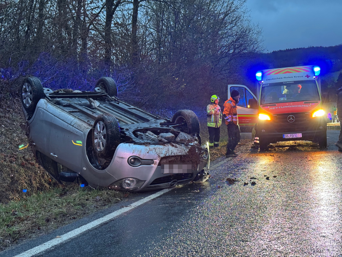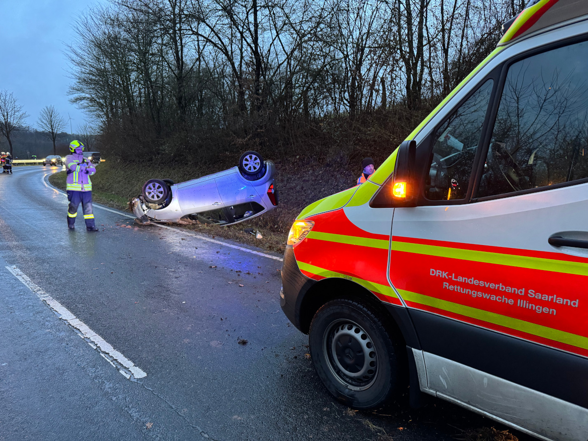 Fahrzeug überschlägt sich zwischen Dirmingen und Wustweiler