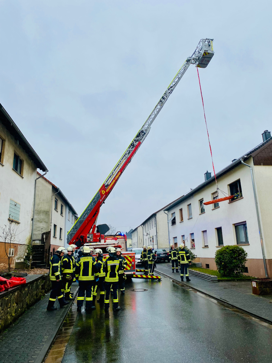 Um einen Patienten nach einem medizinischen Notfall aus dem Obergeschoss eines Wohnhauses schnell und schonend zum Rettungswagen zu bringen, hatte der Rettungsdienst am Nachmittag des 10. Februar 2025 gegen 15:47 Uhr die Feuerwehr zur Einsatzstelle im Eichenweg nachgefordert. Der Zustand des Patienten ließ einen Transport durch das Treppenhaus nicht zu. Deshalb wurde die Drehleiter der Feuerwehr Lebach vor dem Gebäude in Stellung gebracht. Über eine unter dem Drehleiterkorb angebrachte Schleifkorbtrage konnte der Patient dann zügig nach unten gebracht werden. Die Einsatzkräfte der Feuerwehr konnten den Patienten dem Rettungsdienst wieder übergeben, der die weitere Versorgung und den Transport in ein Krankenhaus übernahm. Der Einsatz war für die Feuerwehr nach rund einer Stunde beendet.