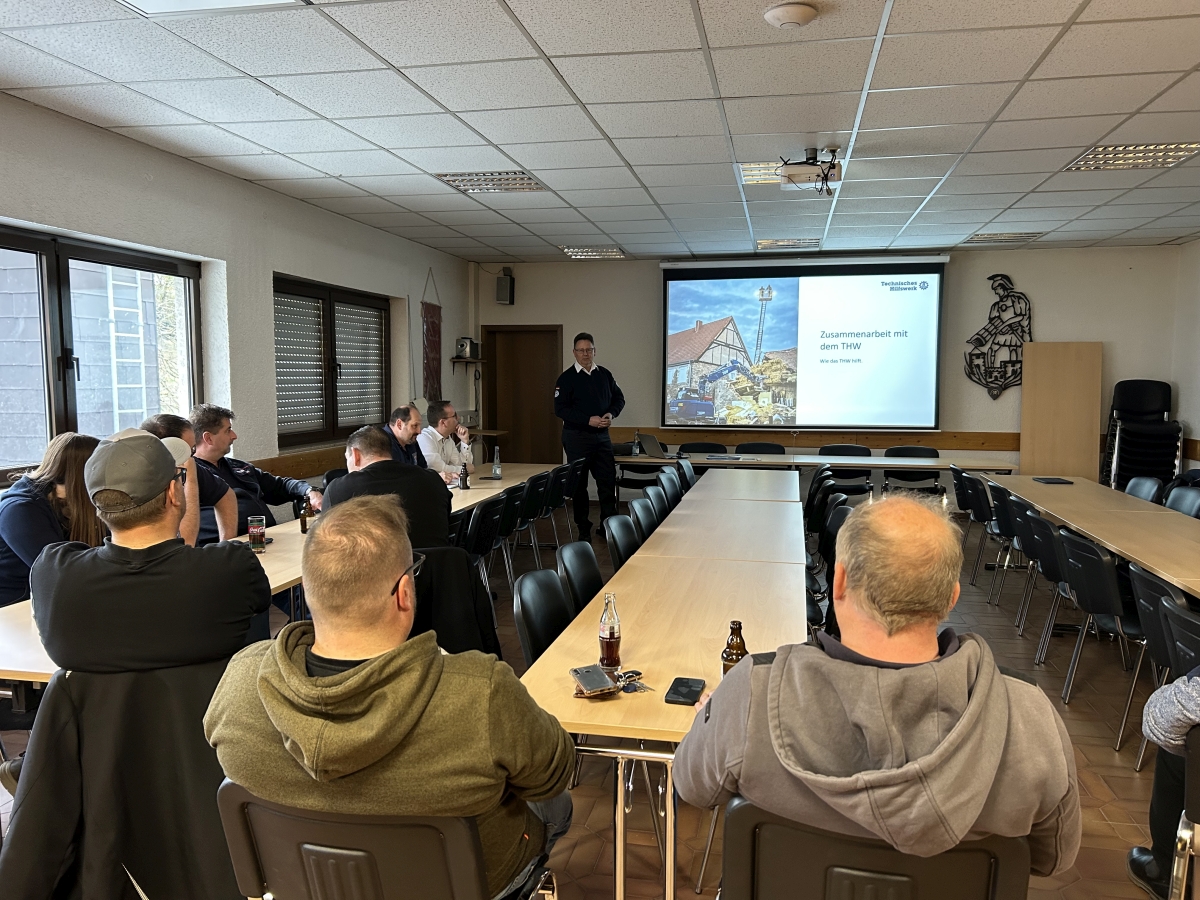 Im Löschbezirk Eppelborn wird seit über 50 Jahren an Karfeitag traditionell eine Sitzung der Führungskräfte durchgeführt. Auch in diesem Jahr konnte wieder eine interessante Veranstaltung angeboten werden. Um 16 Uhr konnte Löschbezirksführer Eric Holzer die anwesenden Gruppen- und Zugführer sowie einige Mitglieder der Ehrenabteilung begrüßen, und dann das Wort an Wolfgang Walzer vom THW Ortsverband Illingen weitergeben. Als Fachberater vertritt Wolfgang Walzer das THW auf verschiedenen Ebenen, und berät Einsatzleiter über das Spektrum und Leistungsvermögen von THW-Einheiten. Auch hinsichtlich der Einsatztaktik und der Führungsstruktur die sich von den Strukturen der Feuerwehren deutlich unterscheiden unterstützt und informiert er. In einem kurzweiligen, interessanten Vortrag erläuterte er vor den Feuerwehrmitgliedern die grundsätzliche Struktur und den Aufbau des THW. Ganz besonders Raum fanden die regionalen Möglichkeiten im Saarland. Durch die modulare Zusammenstellung von THW-Potenzial für den konkreten Einsatzbedarf ergeben sich in der Zusammenarbeit mit den Feuerwehren vielfältige Möglichkeiten. Den Teilnehmern wurde bewusst dass sich THW und Feuerwehr optimal ergänzen und unterstützen können. Ergänzend wurden noch noch die organisatorischen Rahmenbedingungen erläutert, und die Alarmierungsmöglichkeiten dargestellt. Zum Abschluss der Veranstaltungen gab es auch ganz traditionell (seit 1972) gebratene Forellen mit Kartoffelsalat, die vom Küchenteam des Löschbezirks in gekonnter Manier perfekt zubereitet wurden.