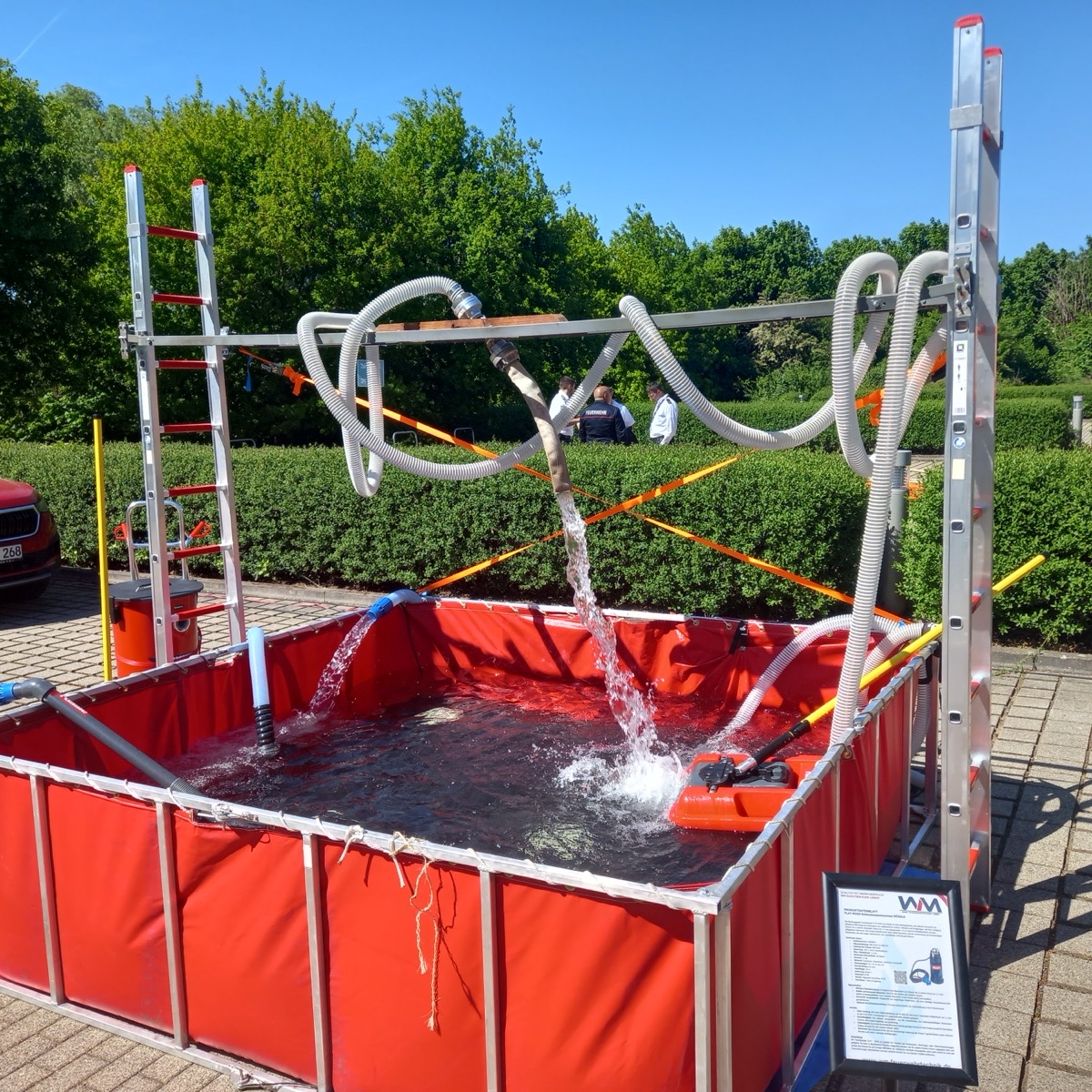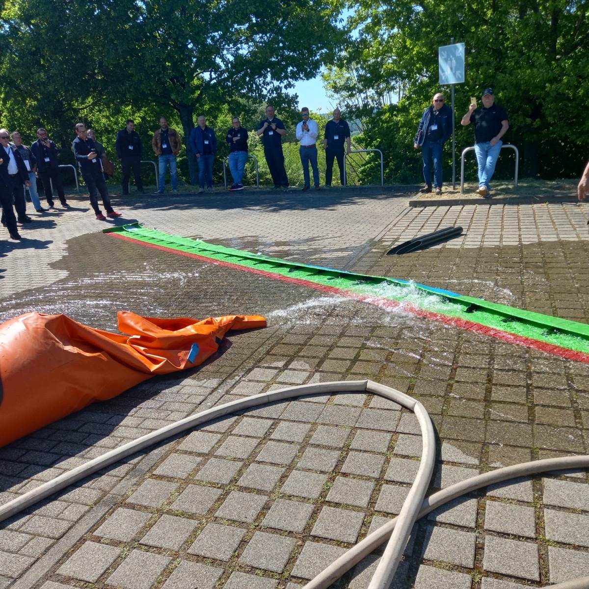 Darüber hinaus wurde auch der Zimmermann P2 Spannungswarner in der Praxis vorgestellt. Zudem stellten noch weitere Lieferanten im Bereich der Feuerwehrtechnik Einsatzmittel zum Thema Unwetter- und Hochwasserlagen vor.