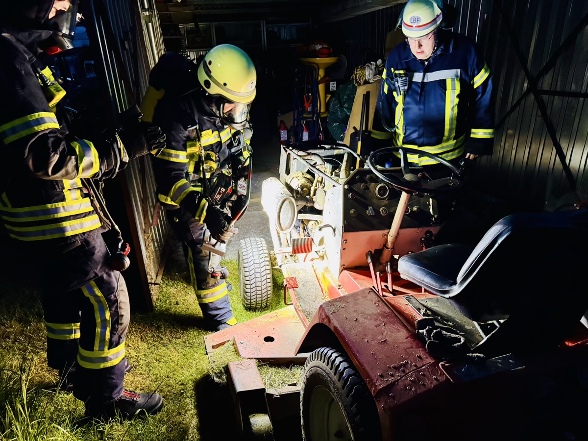 Anwohner löscht Schwelbrand an Aufsitzrasenmäher