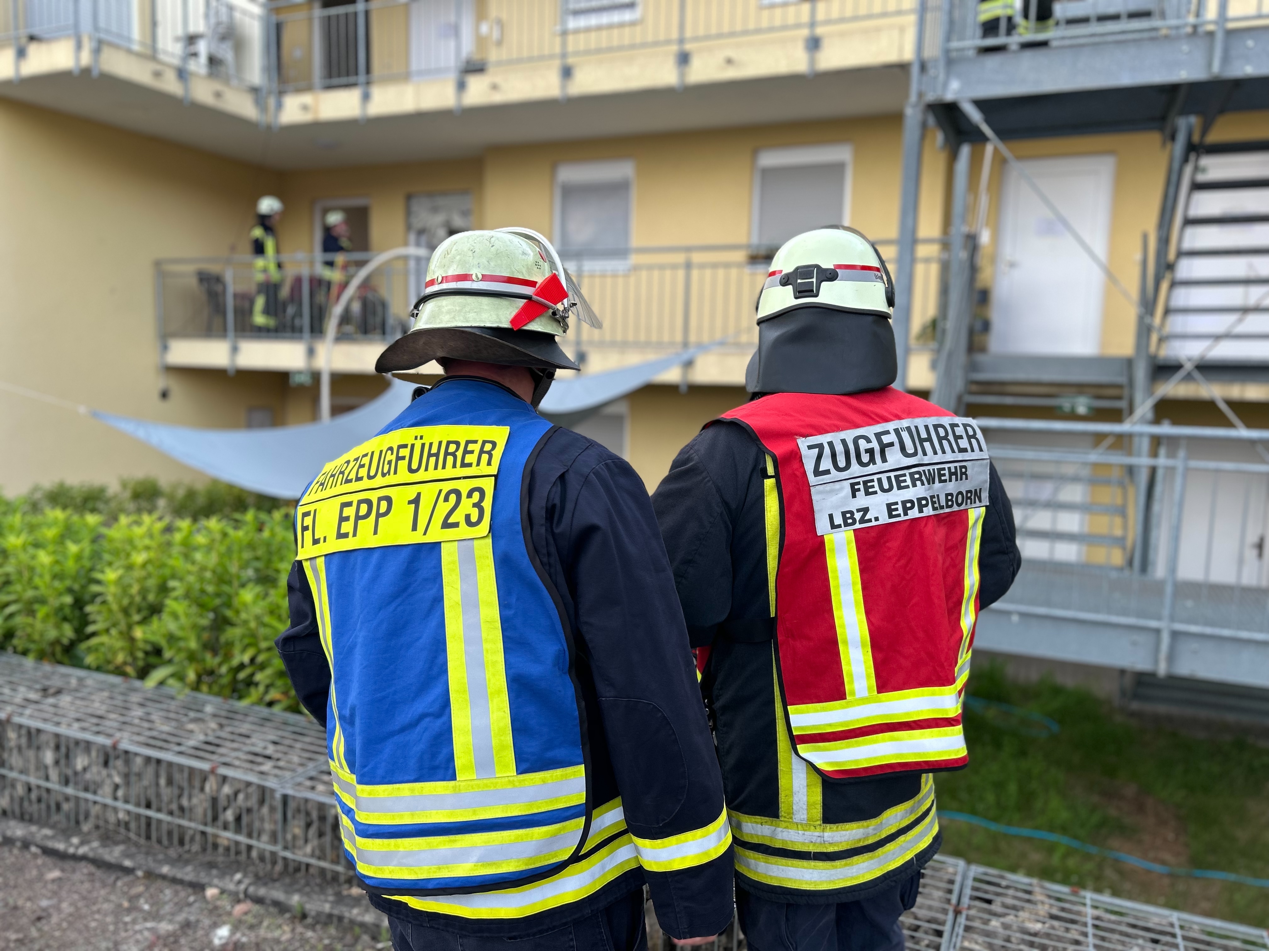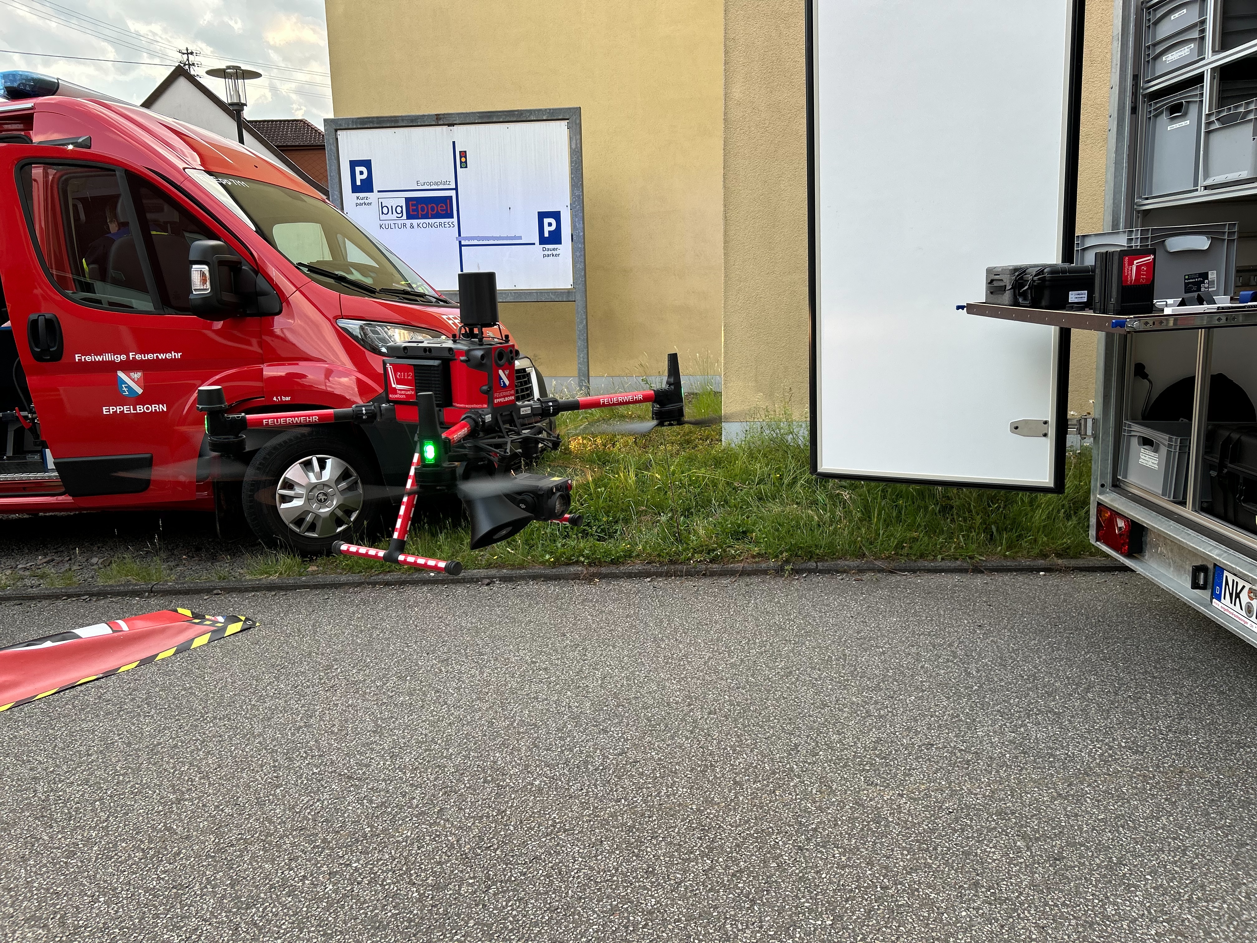 Folglich wurden noch die beiden Löschbezirke Dirmingen und Wiesbach, sowie die Führungsunterstützungsgruppe der Feuerwehr Eppelborn und die Drohneneinheit zum betreuten Wohnen alarmiert.