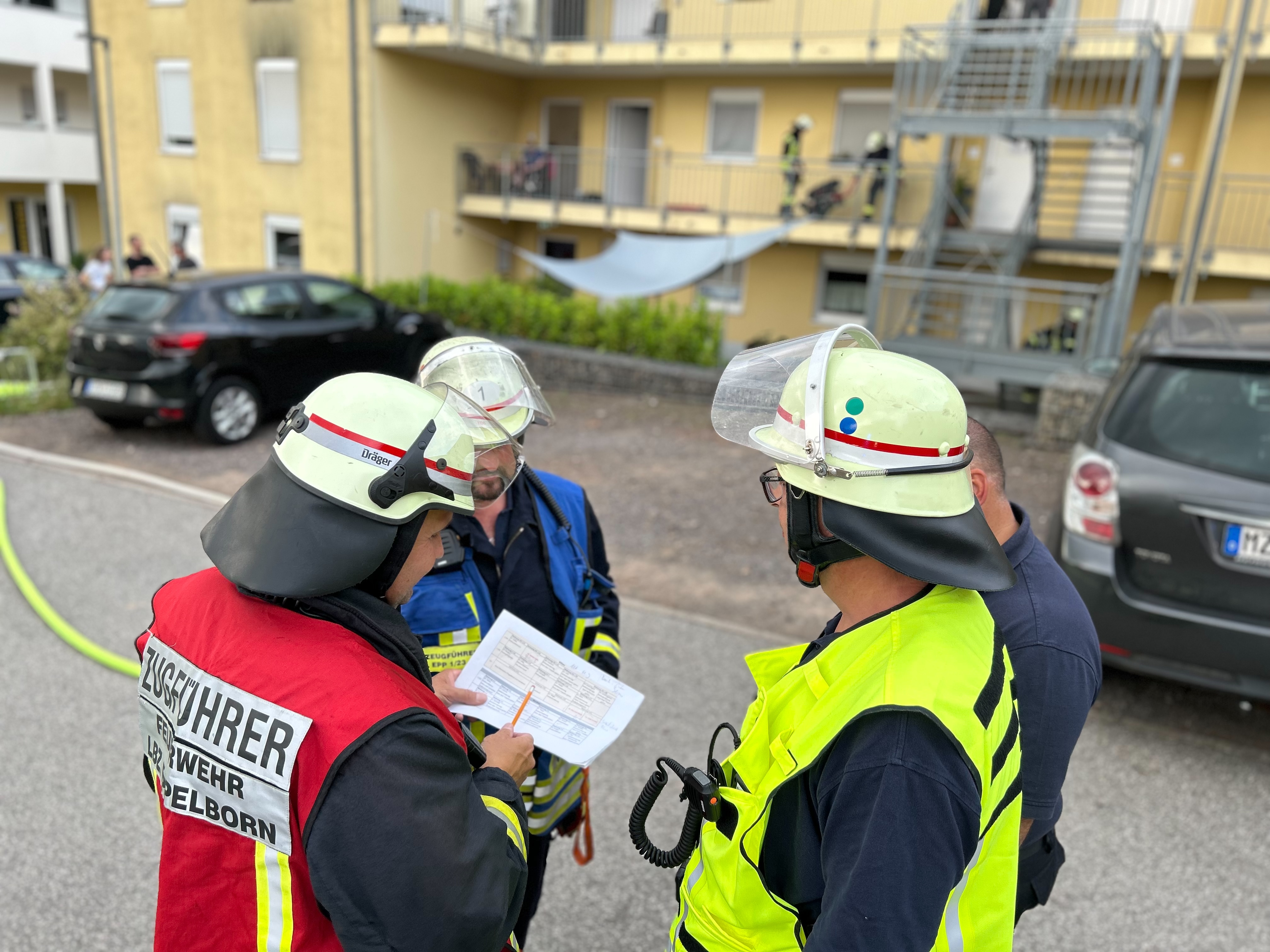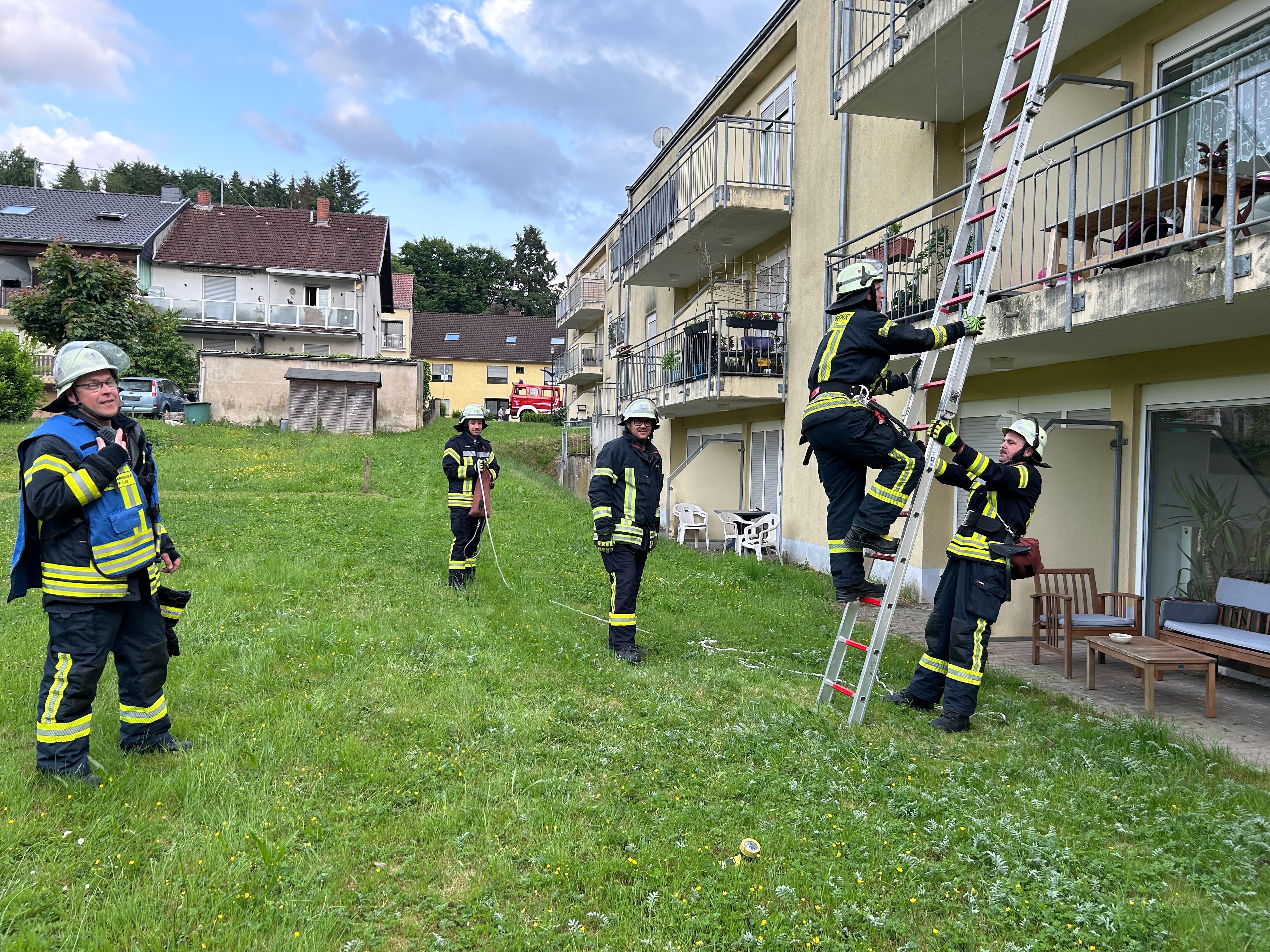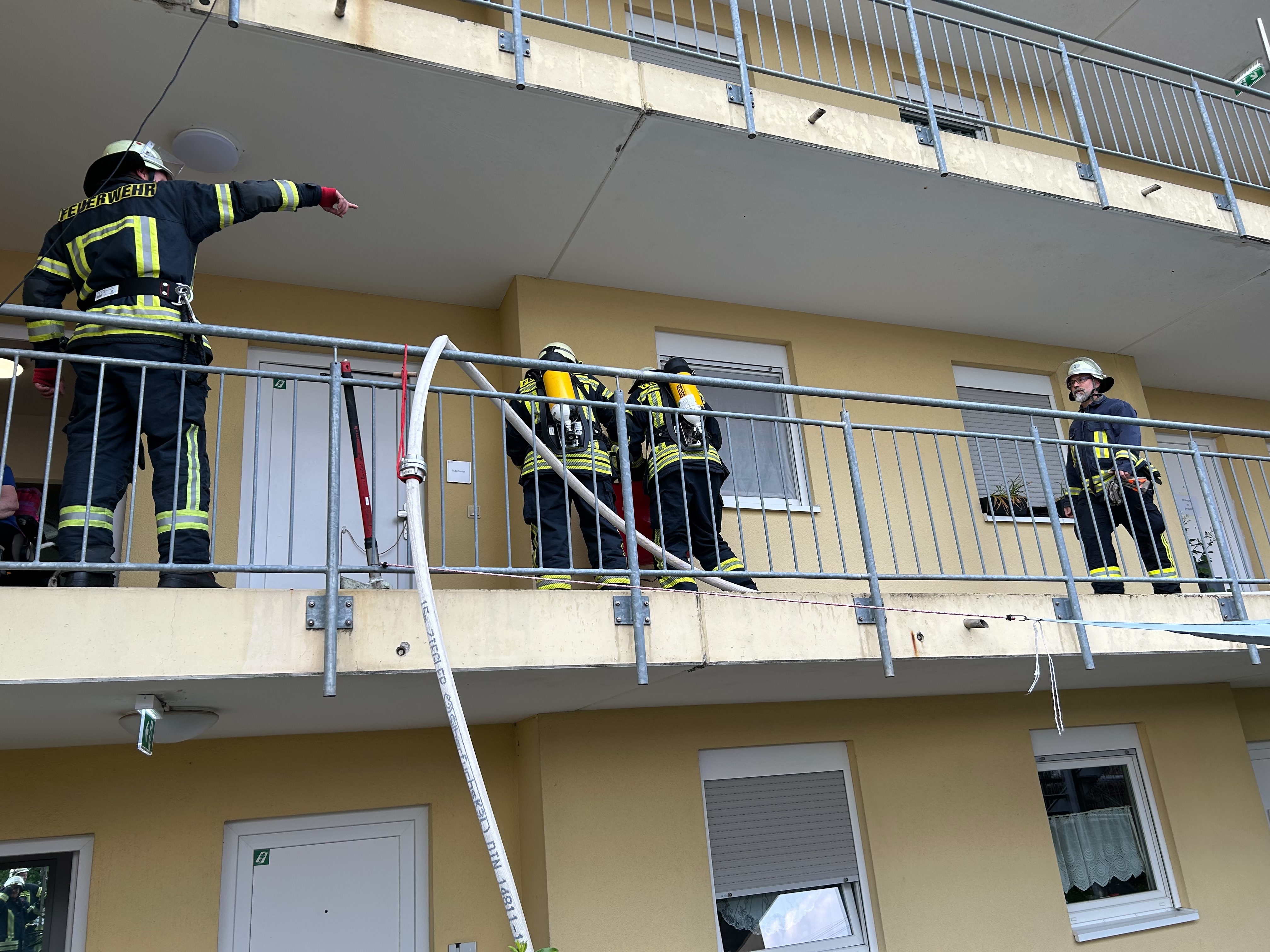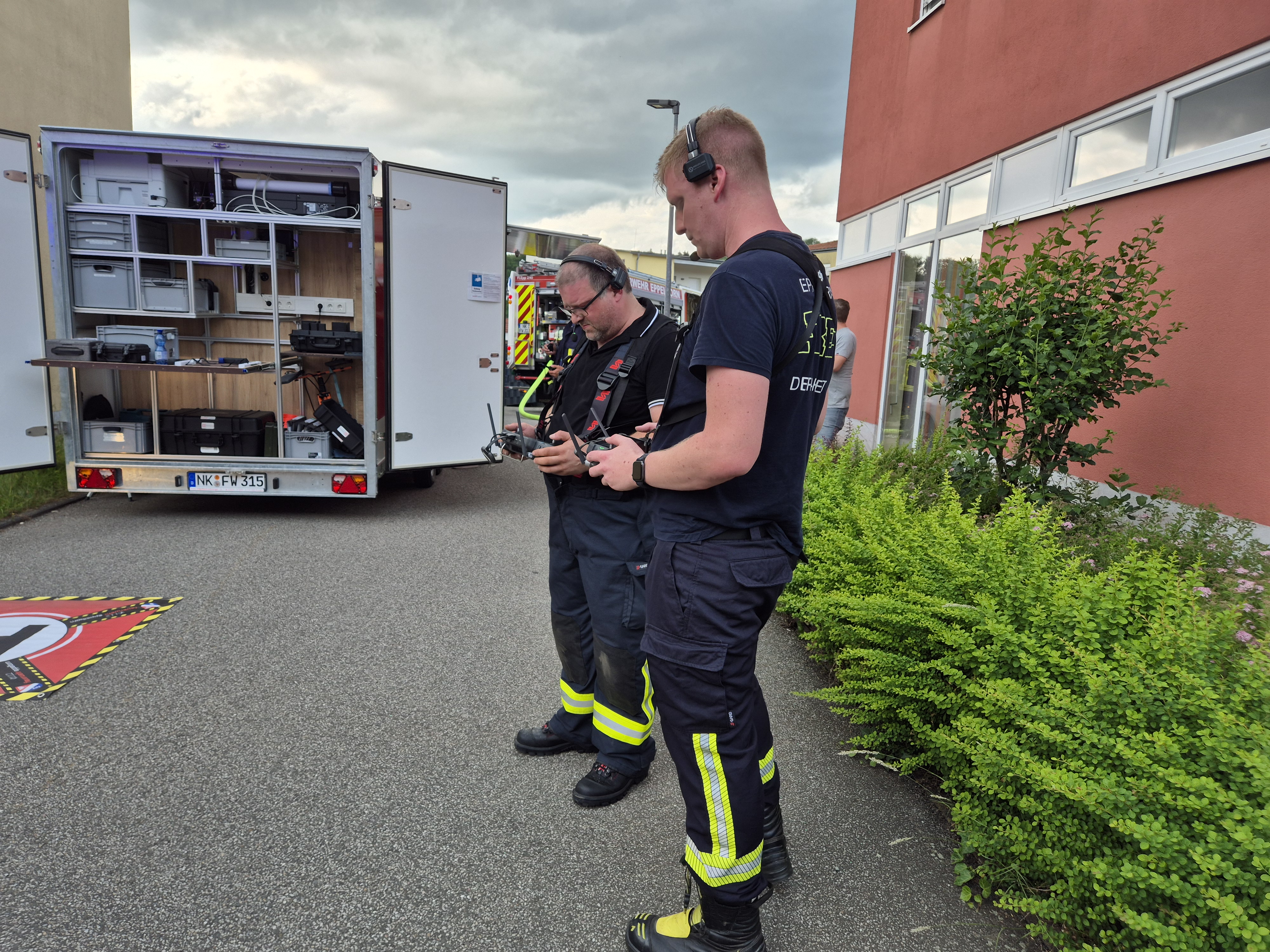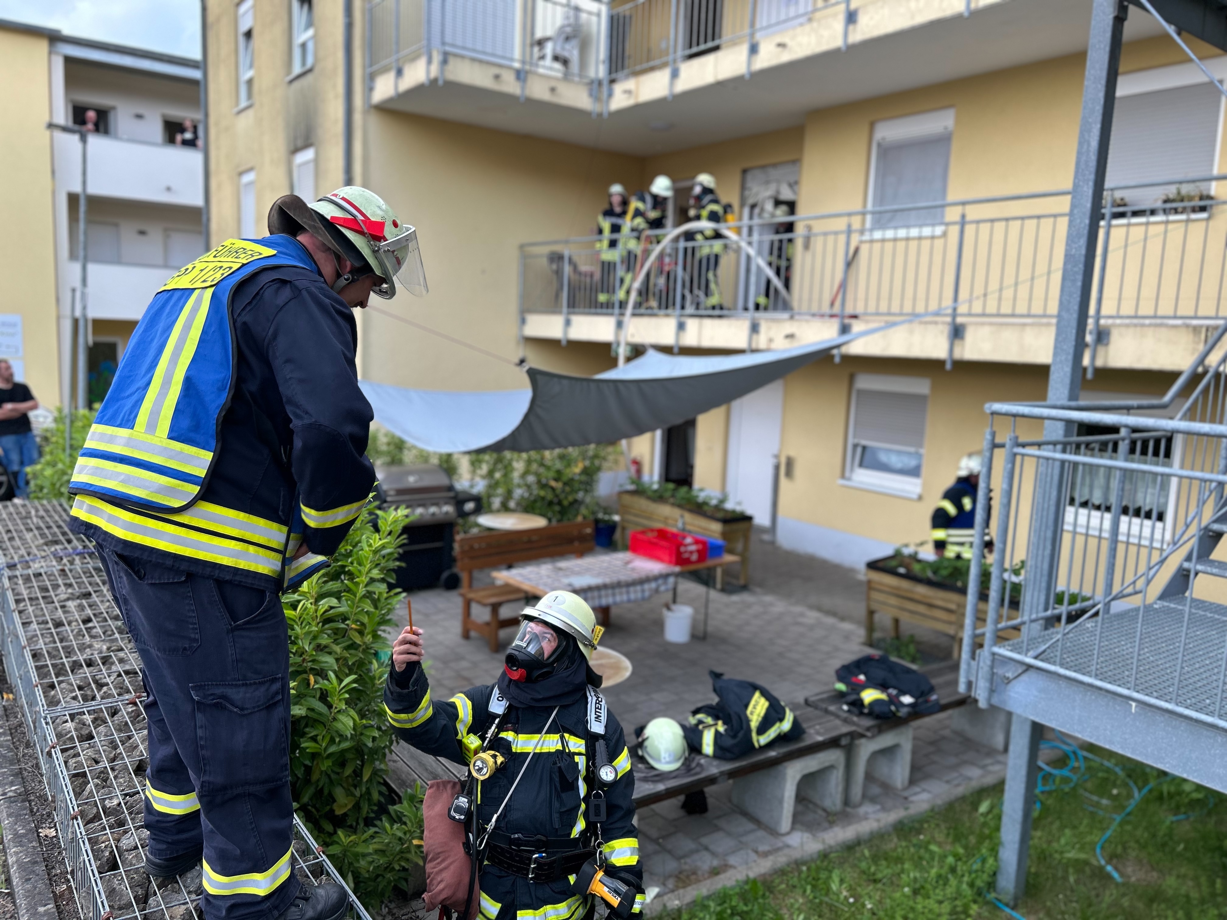 Nachdem sich die ersten Einheiten auf den Weg in den Einsatz machten, teilte die Leitstelle über Funk als Übungsnachricht mit, dass ein Brand bestätigt sei und mehrere Personen gerettet werden müssten.