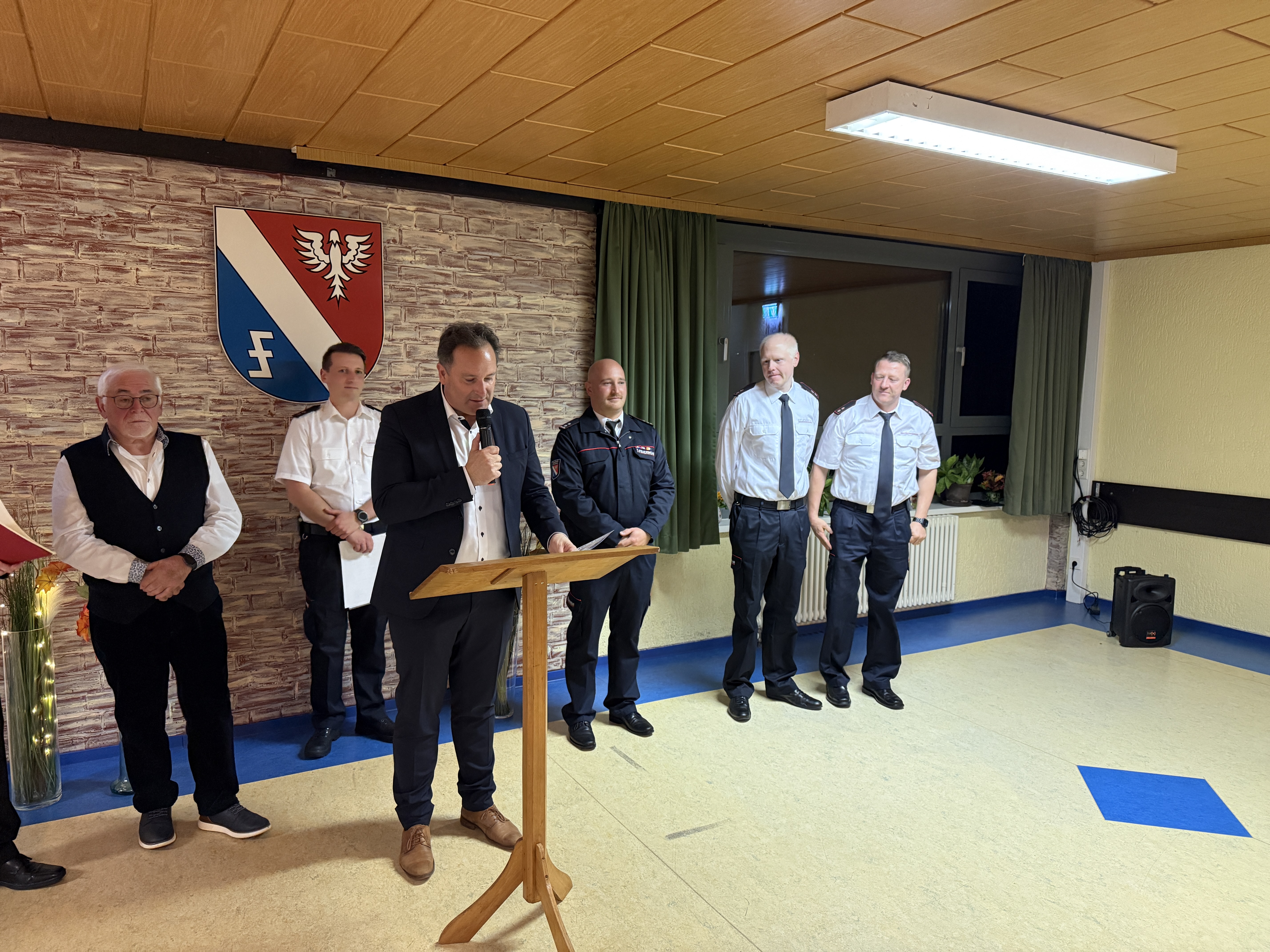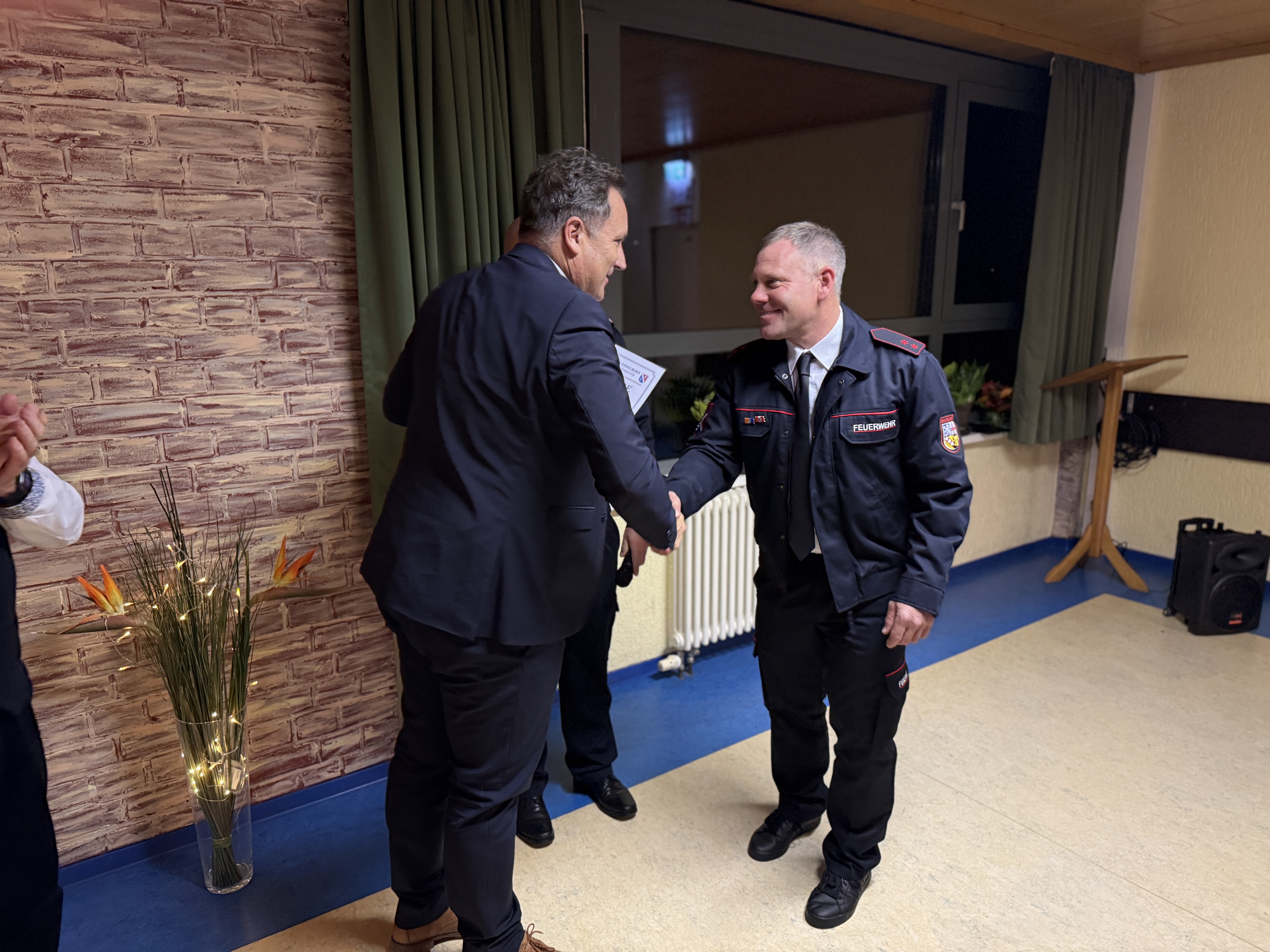 Er zeigte wieder auf welchen hohen Stellenwert eine funktionierende Feuerwehr im Dorfleben hat. Ohne die Feuerwehr seien viele Veranstaltungen im Ort gar nicht mehr möglich. Als Dank überreichte er ein Gastgeschenk an den Löschbezirk.