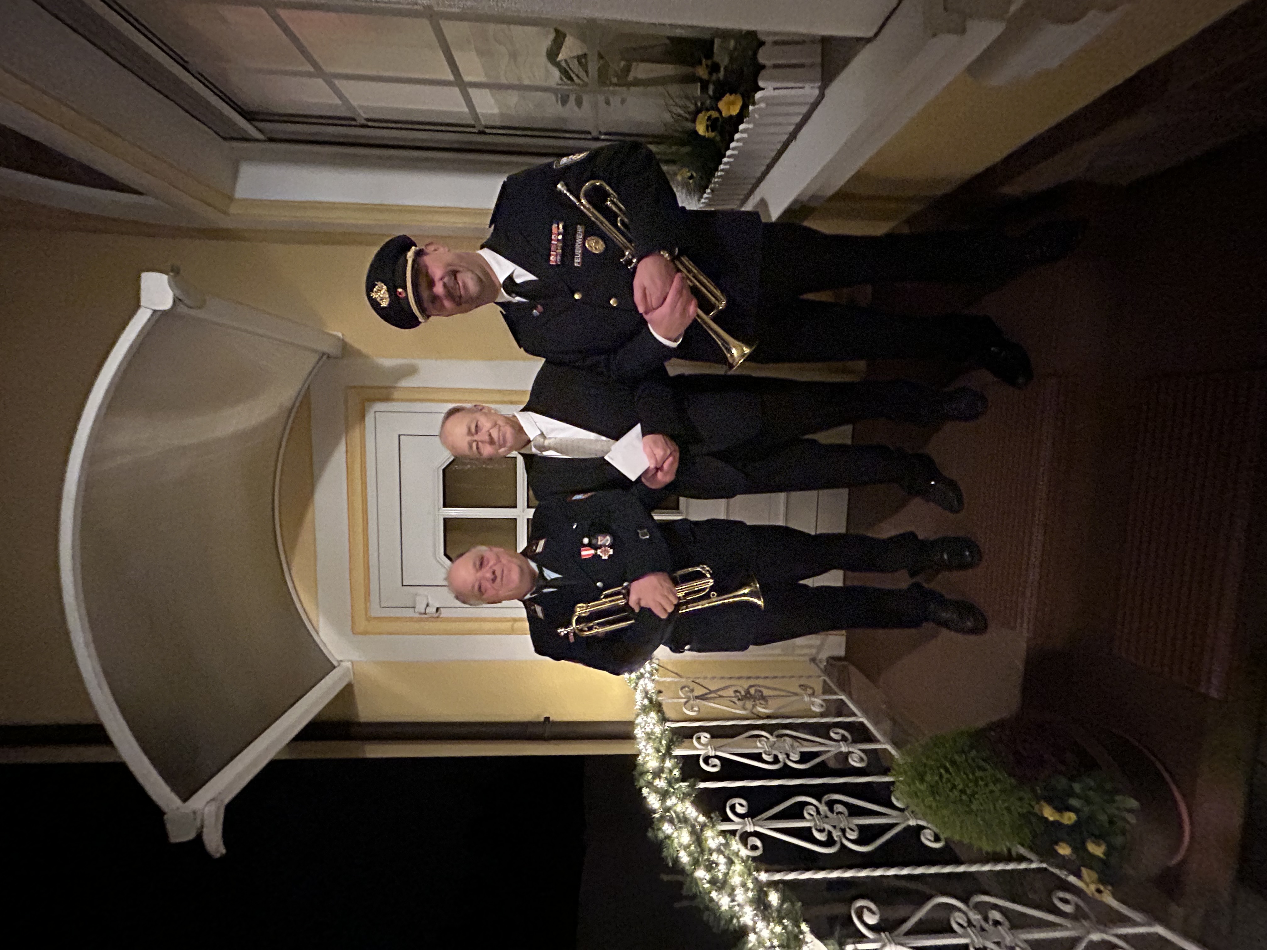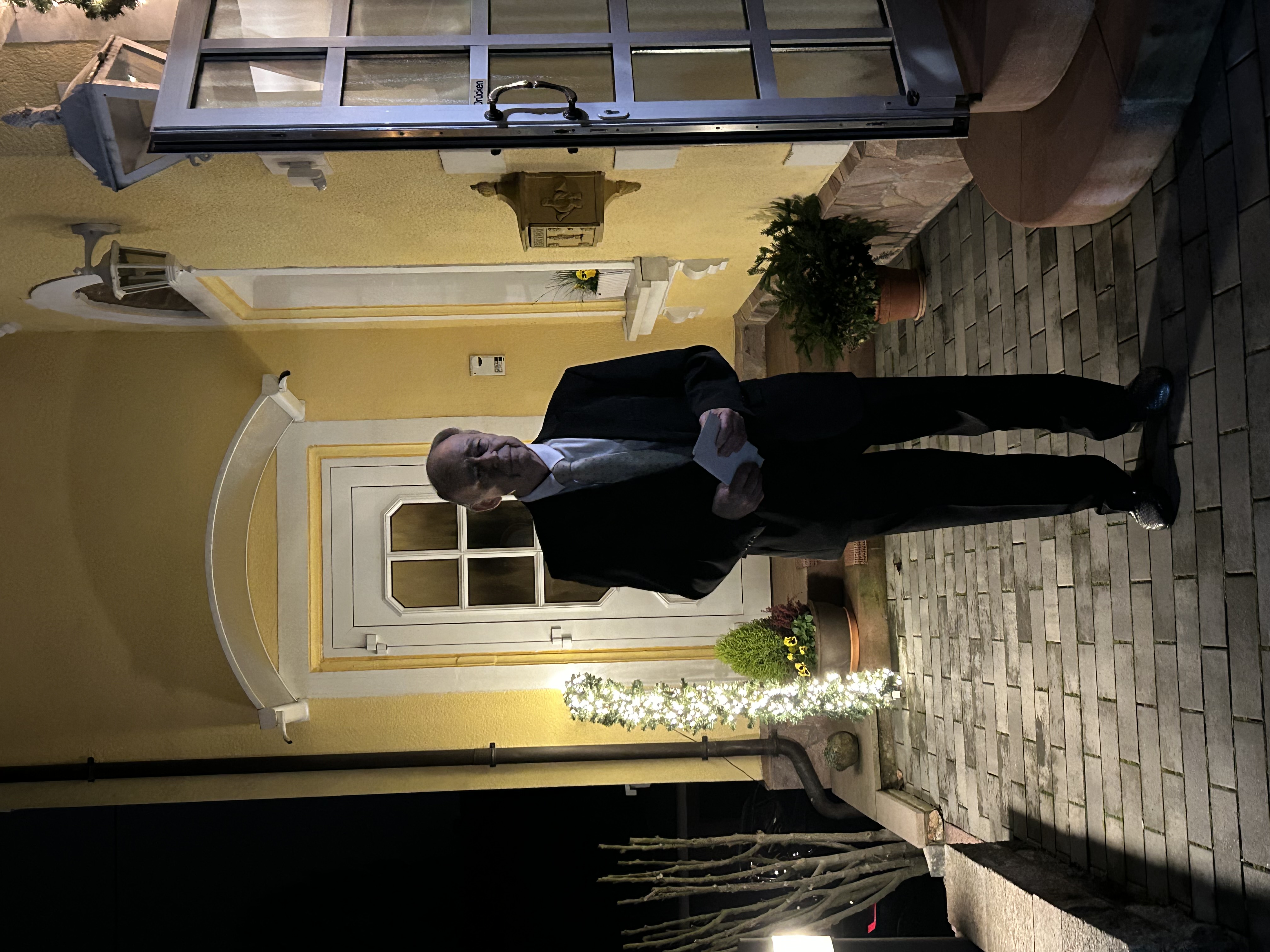 Vor dem Restaurant Italiano war am Freitag dem 12.12. kein Feuerwehreinsatz, der Fanfarenzug sowie der Löschbezirk waren angetreten um dem Ehrenlöschbezirskführer Hans Jürgen Olliger zum 80. Geburtstag gratulieren,