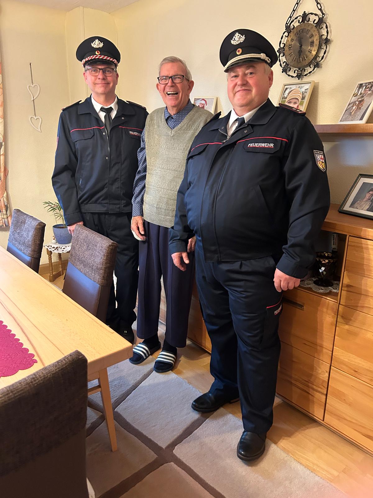 Am 01.05.1995 wechselte er, nach 27 aktiven Jahren, in die Altersabteilung des Löschbezirk Dirmingen. Bis zu seinem Tod am 26.01.2026 blieb er seiner Feuerwehr treu. Wir hatten die Ehre Karl Heinz noch zu seinem 85. Geburtstag im letzten Jahr gratulieren zu dürfen.