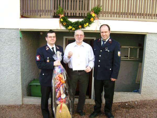 Die Kameraden der aktiven Wehr schickten ihren Löschbezirksführer Rainer Becker in die Mittelstraße, um dem…